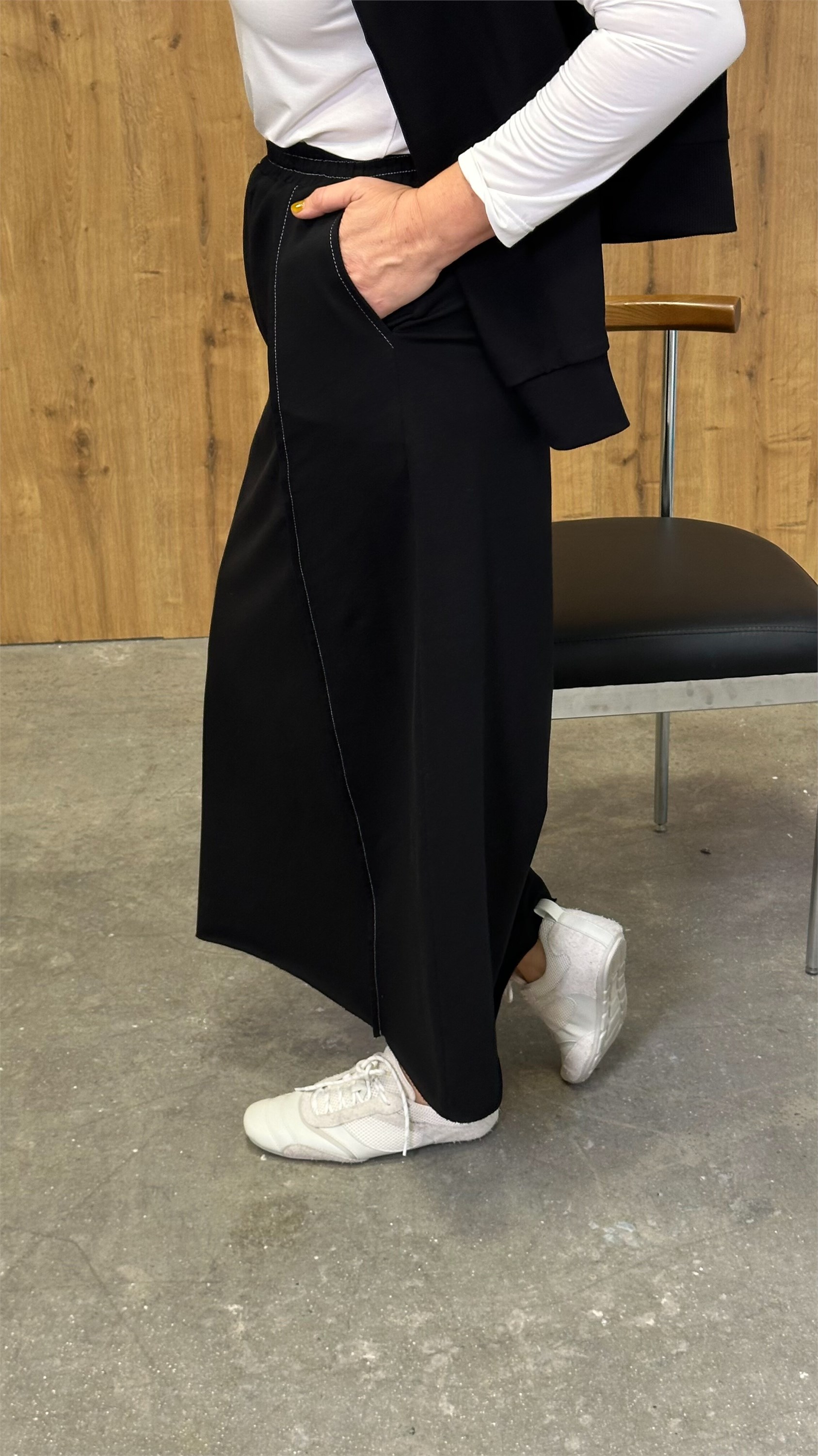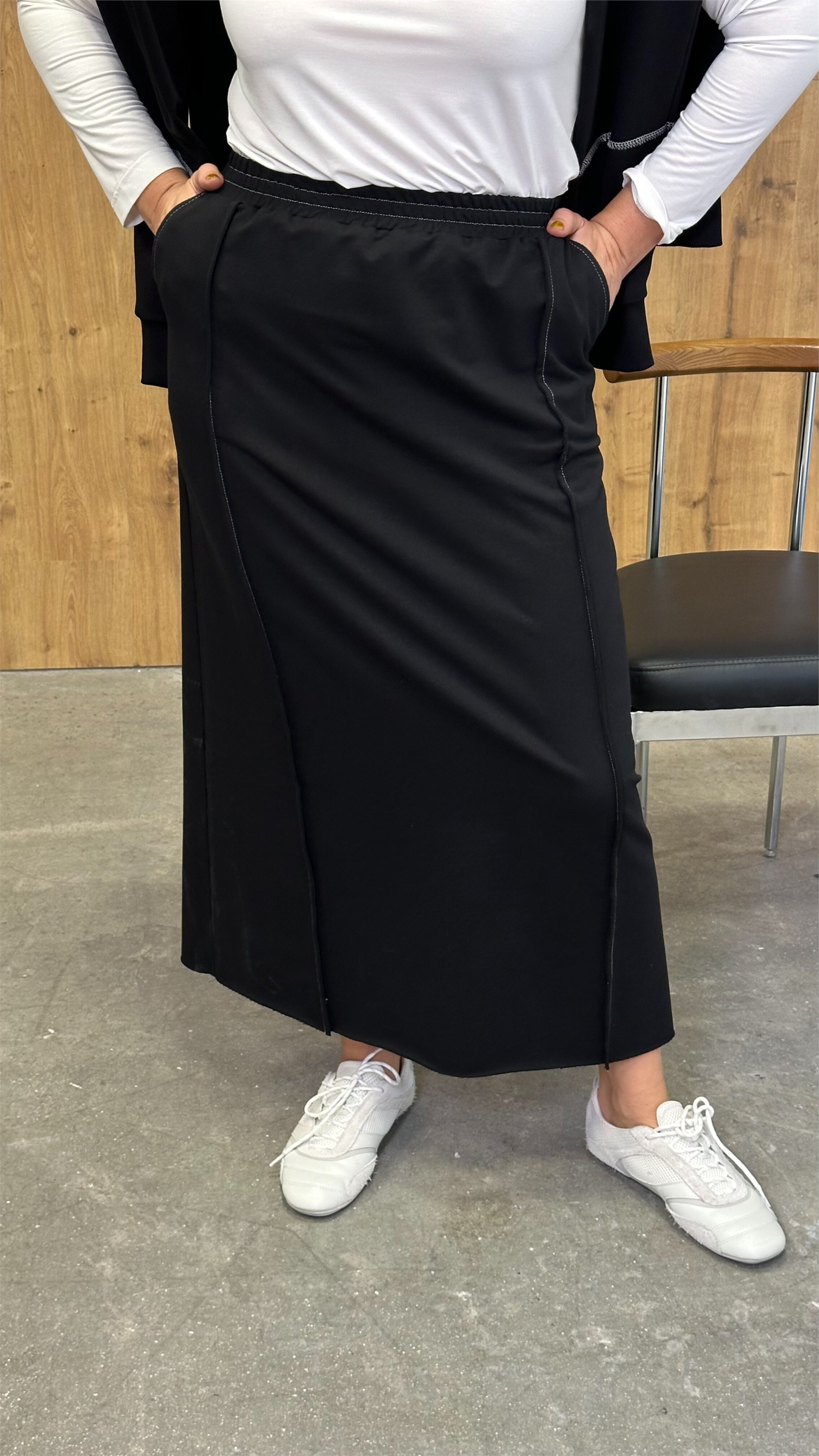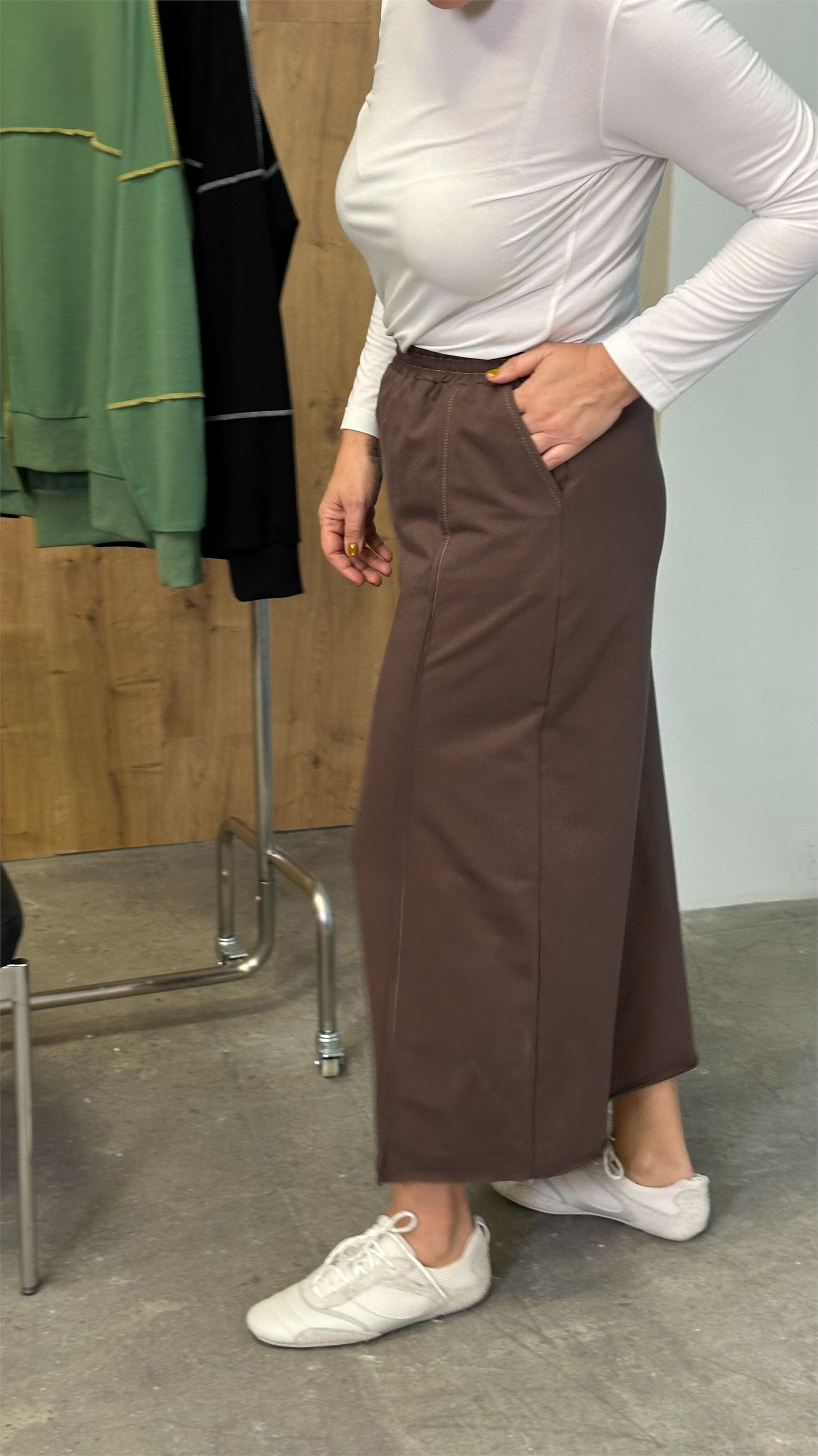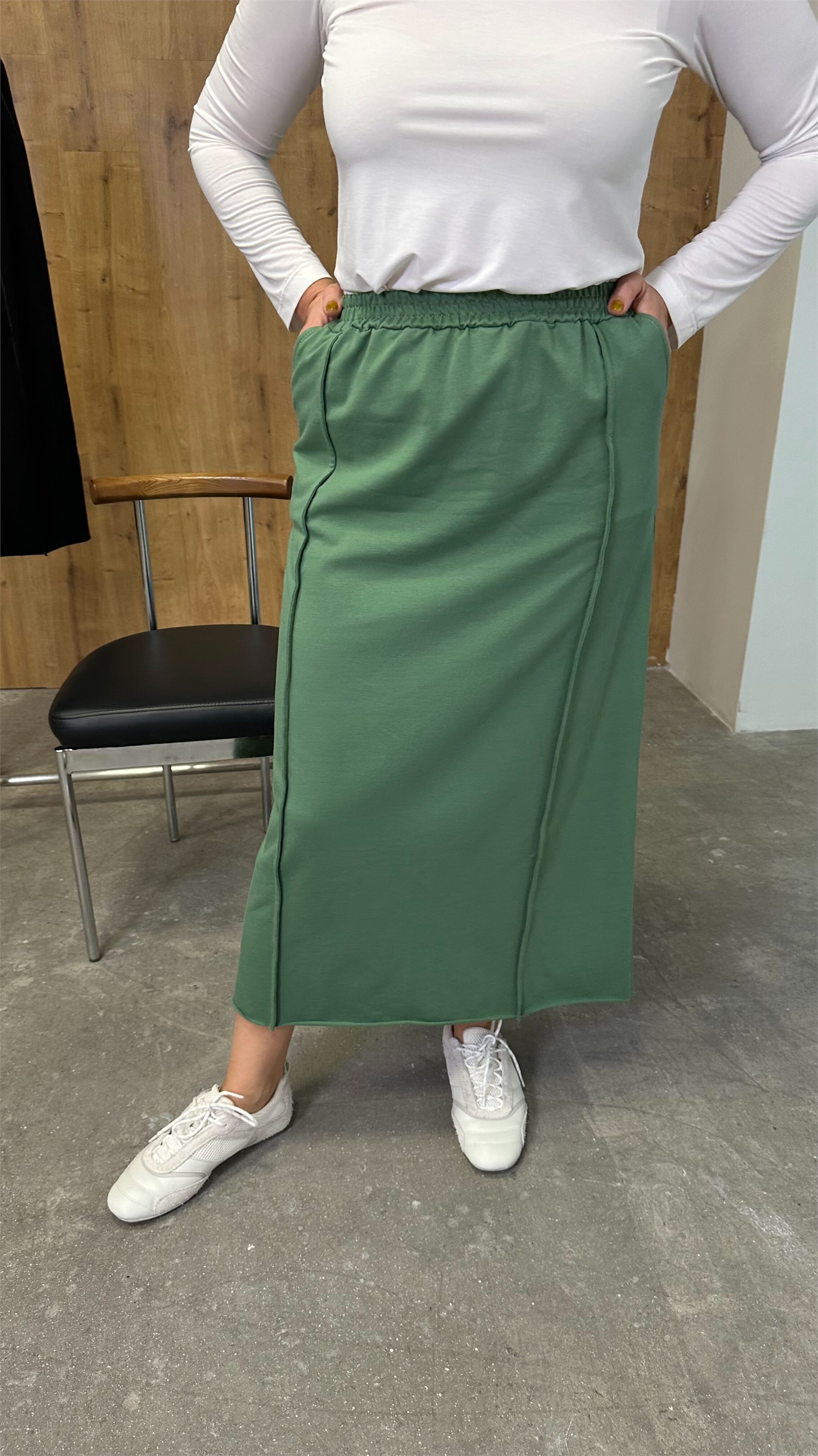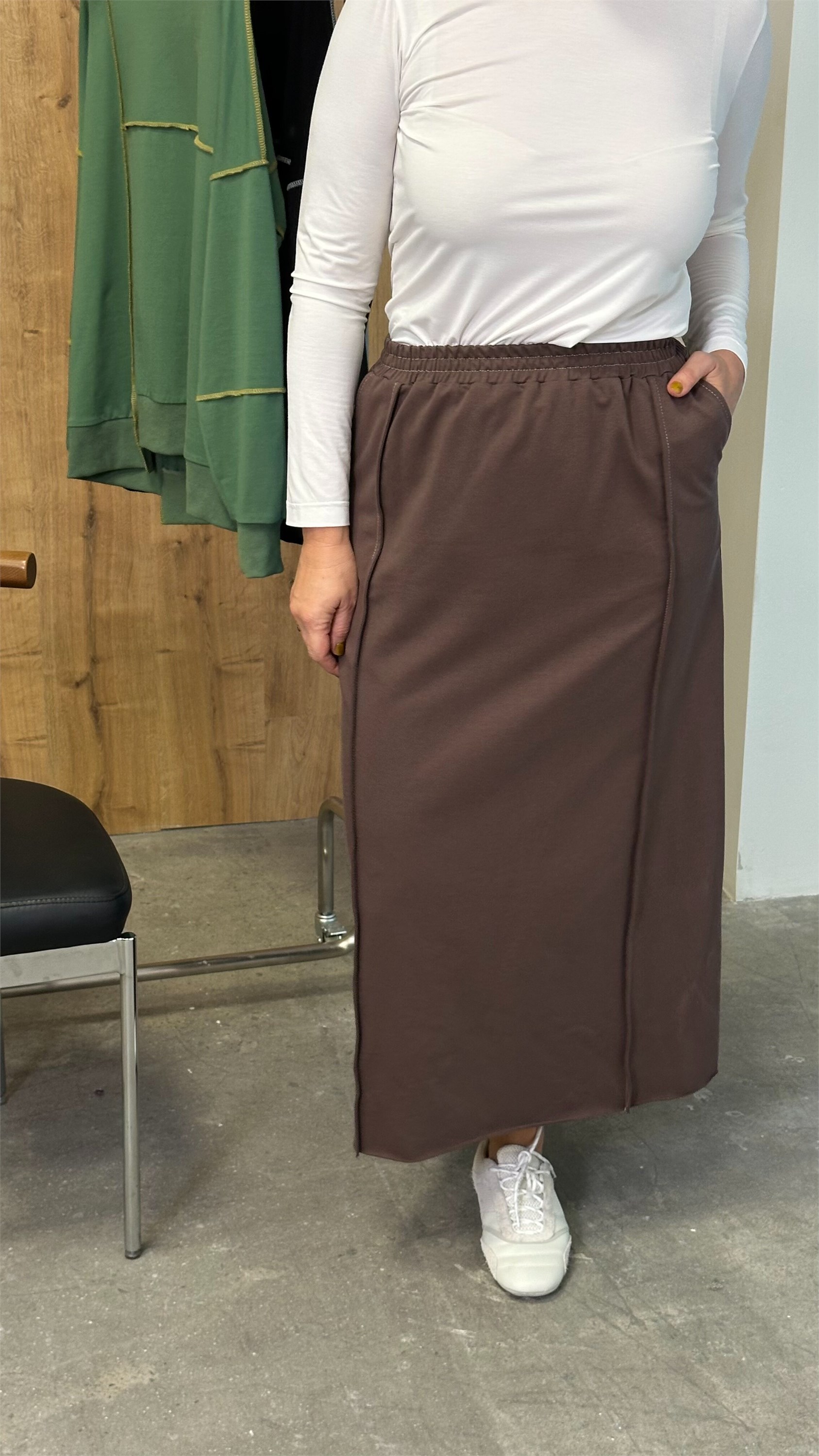Стильная юбка из трикотажа с высоким содержанием хлопка — идеальный выбор для тех, кто ценит комфорт и современный дизайн. Ее прямой фасон создает элегантный и дерзкий силуэт, подчеркнутый модным стилем спорт-шик. Пояс полностью на резинке обеспечивает удобство и хорошую посадку, а декоративные швы с открытым срезом по переду добавляют образу оригинальности и немного бунтарского настроения. Эта юбка отлично подойдет для повседневных образов, сочетая в себе стиль и практичность.Модель представлена в трех цаетах-черный, молочный шоколад и спелая оливка.Размерная линейка от 44 до 52 р.