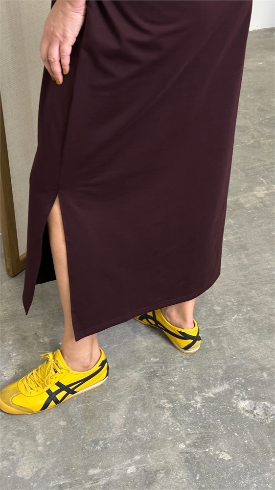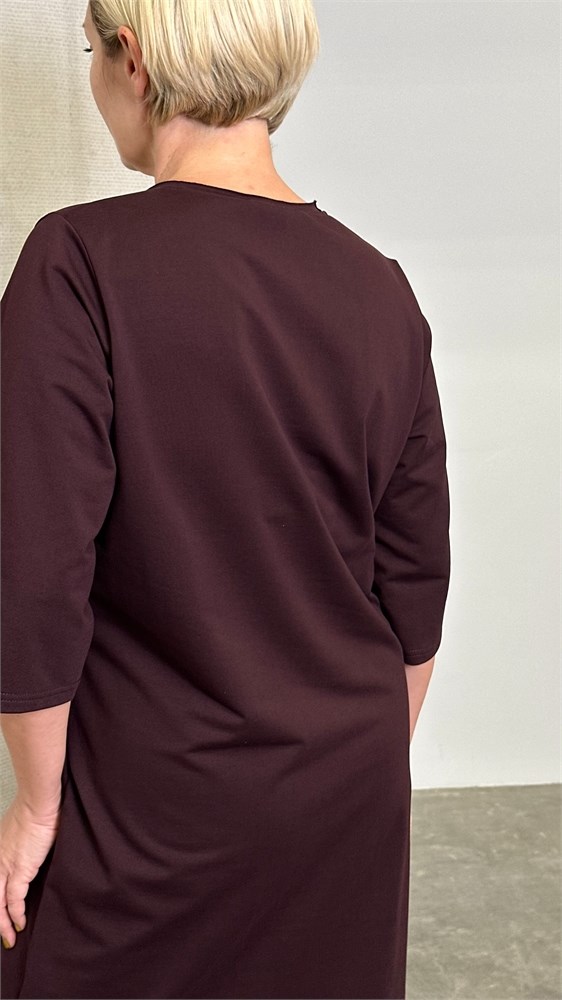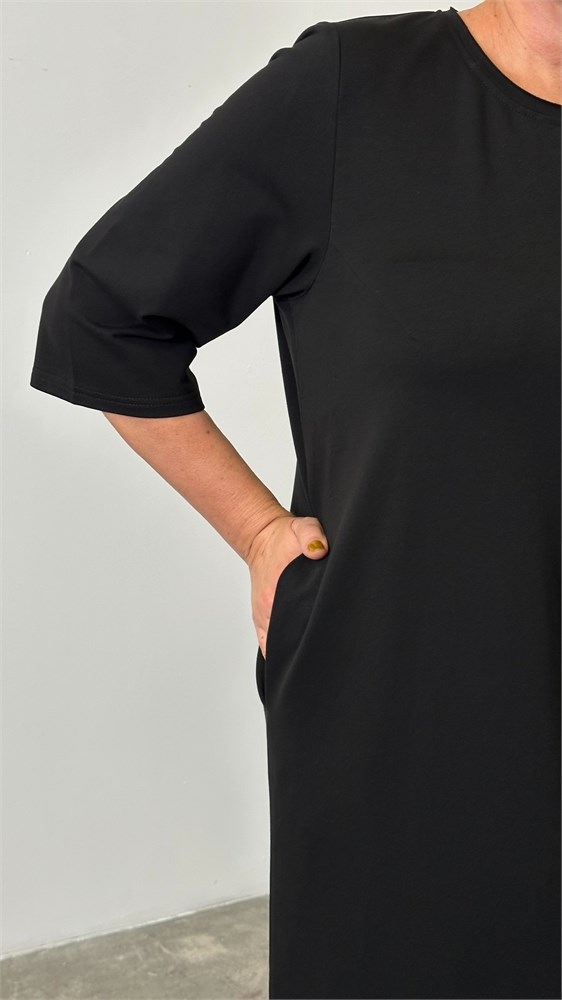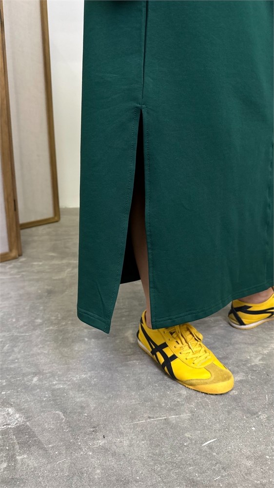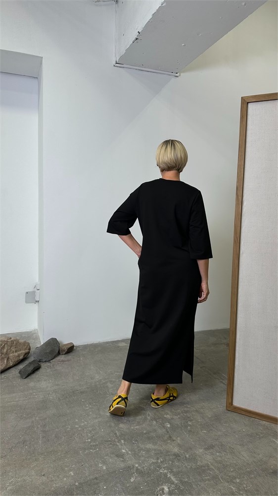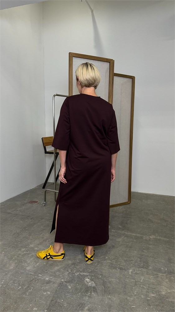 Это стильное платье из хлопкового трикотажа в полуспортивном стиле, идеально сочетающее комфорт и современный дизайн. Длина ниже колена придает образу элегантность, а по бокам расположены разрезы, добавляющие динамичности и свободы движений. Рукав закрывает линию локтя, создавая аккуратный и завершенный силуэт. По центру платья проходит декоративный шов, который подчеркивает структуру изделия и придает ему оригинальность. Такое платье отлично подойдет для повседневных прогулок, активного отдыха или casual-образа с нотками спортивного стиля.Размерная линейка от 44 до 54.Модель представлена в трех расцветках-базовый черный, цвете инжир и изумрудный.