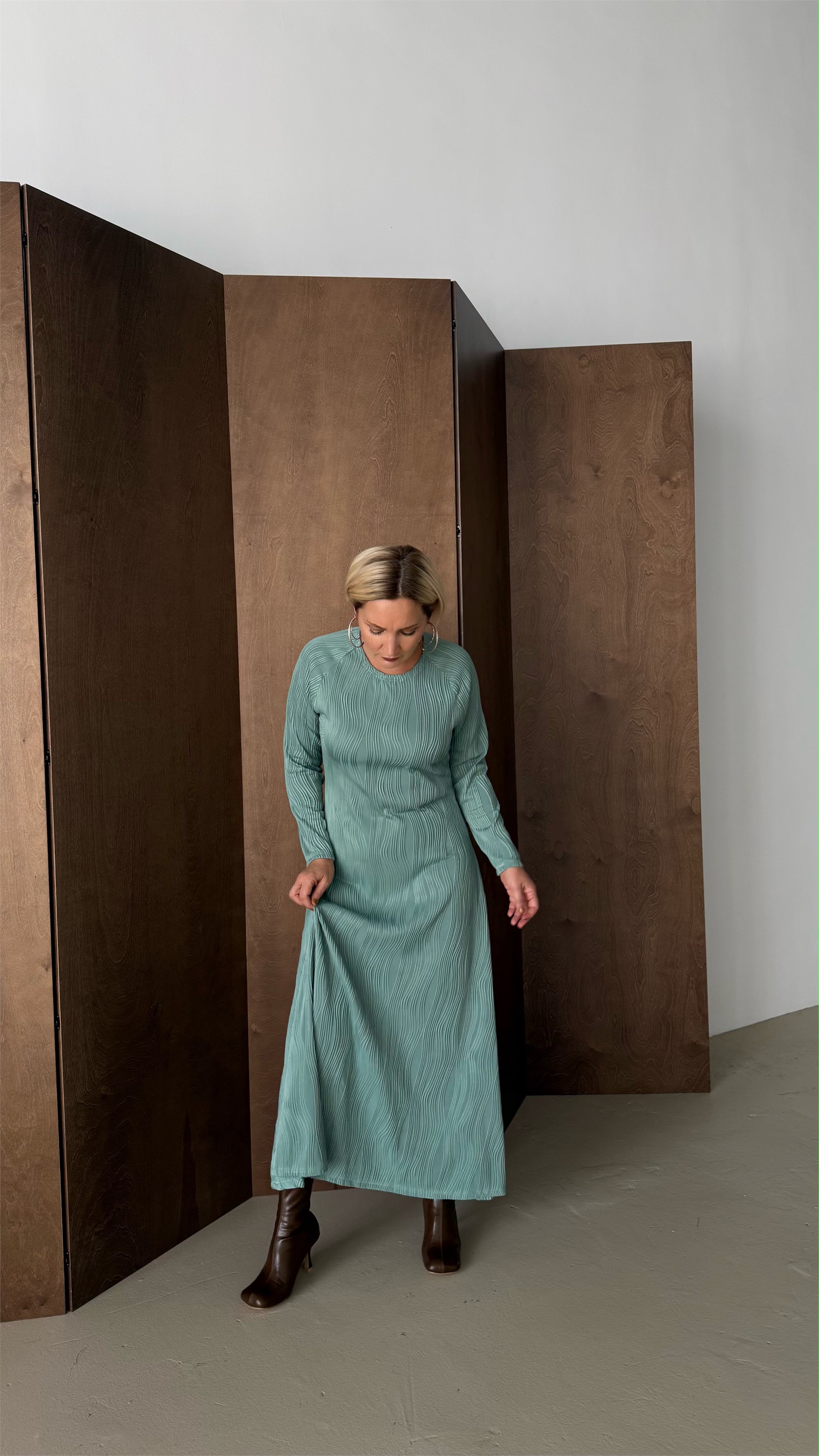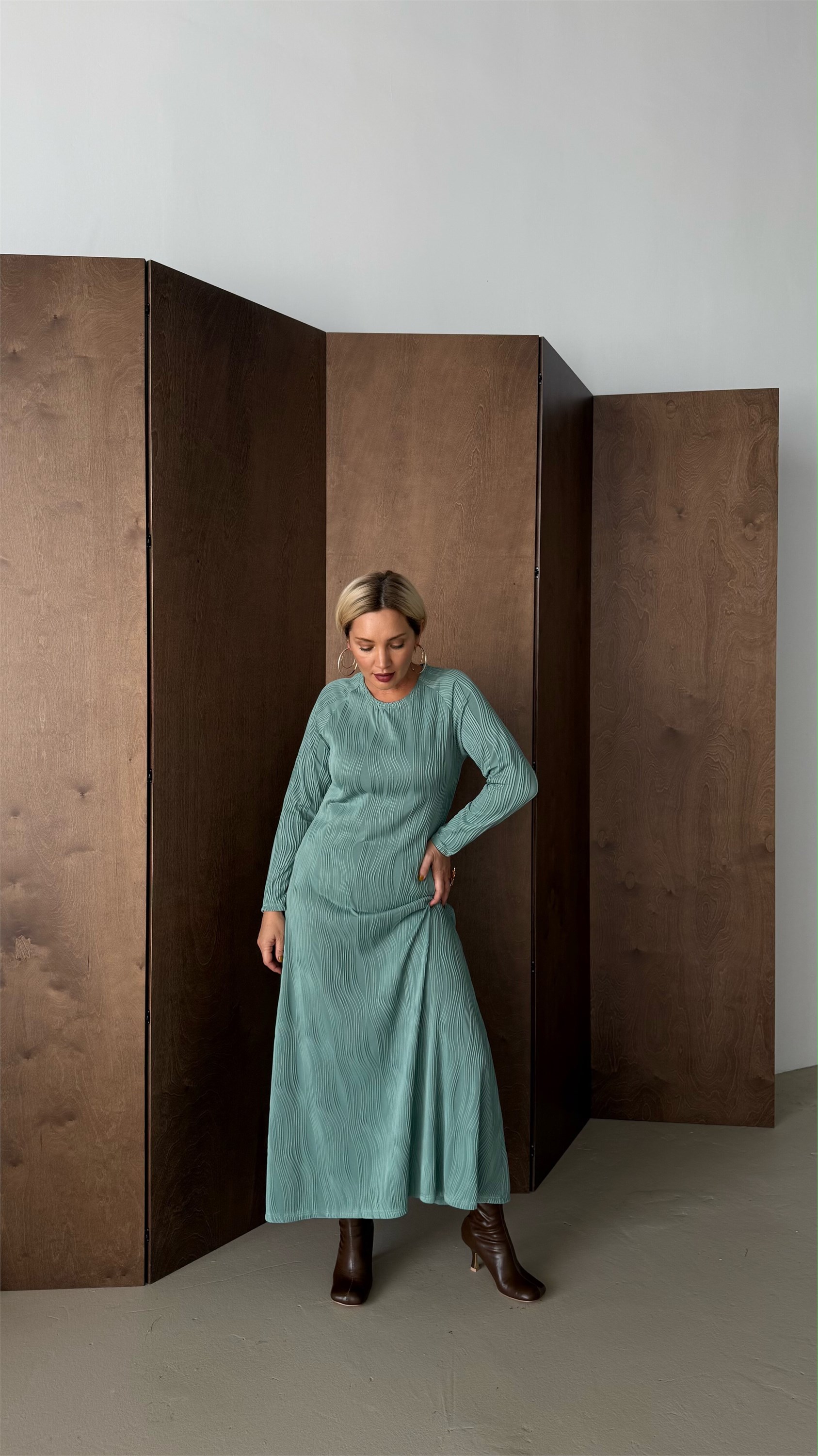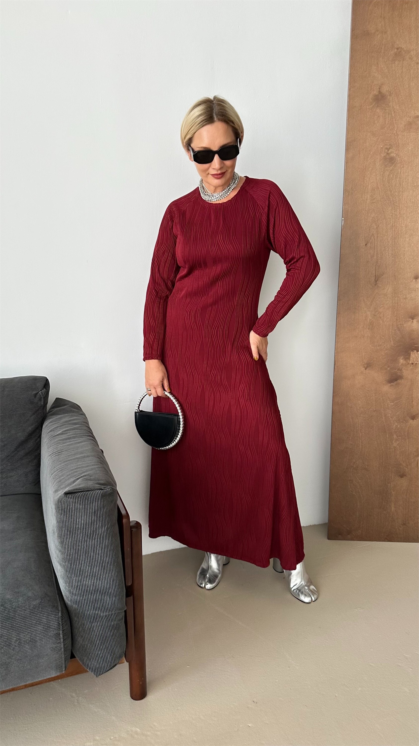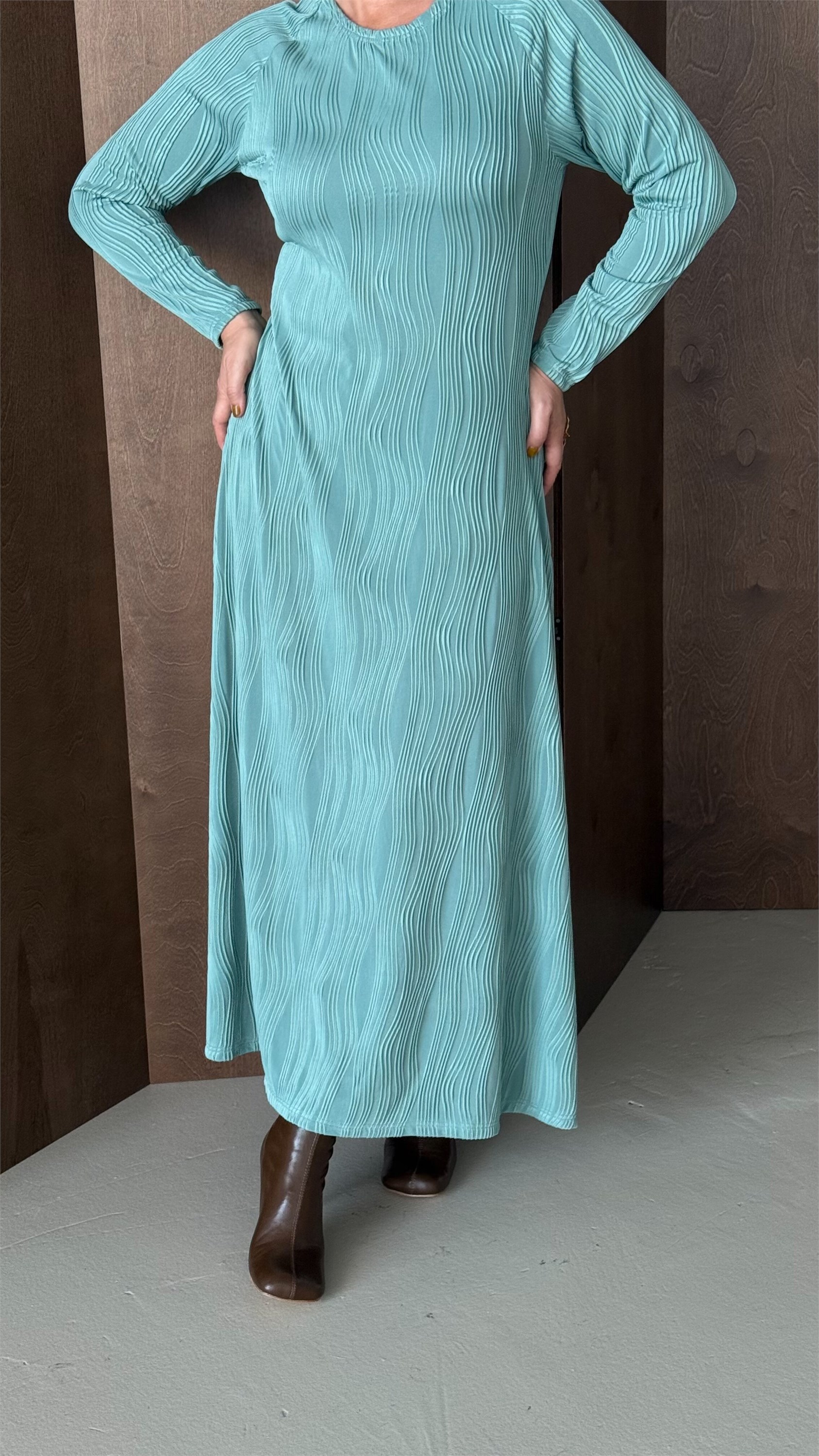 Это элегантное макси-платье с круглым вырезом идеально подчеркнет вашу женственность и стиль. Полуприлегающий силуэт создает гармоничный баланс между комфортом и изысканностью, а рукав реглан добавляет образу легкости и свободы движений. Ткань с рельефным выпуклым рисунком в виде волн придает изделию уникальность и объем, создавая эффект живых морских волн. Длина макси делает платье универсальным для особых случаев и повседневных образов. Идеальный выбор для тех, кто ценит комфорт, стиль и оригинальность.Модель представлена в двух расцветках Бархатная клубника и Осеннее золото.Размерная линейка от 44 до 54 р.