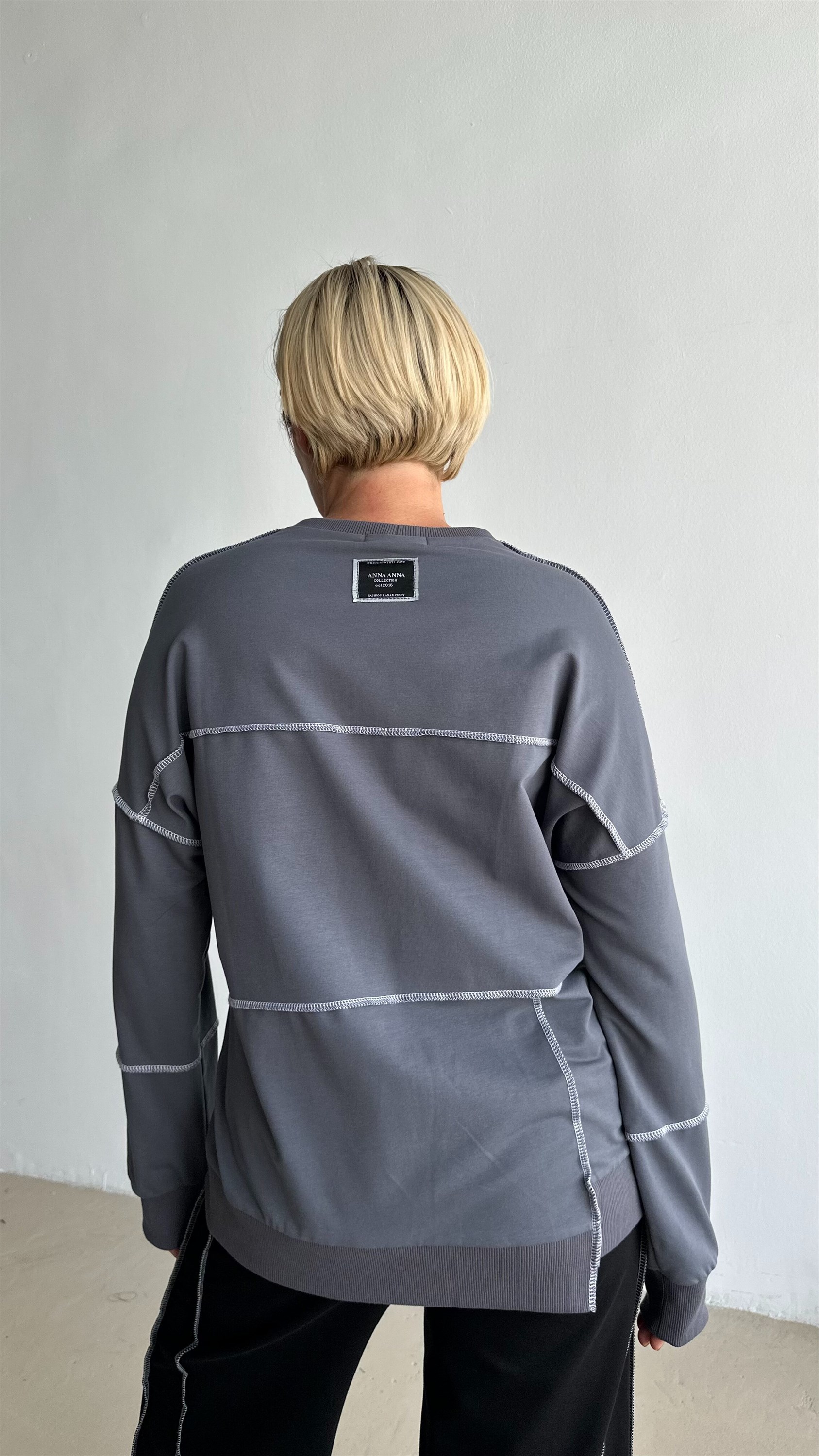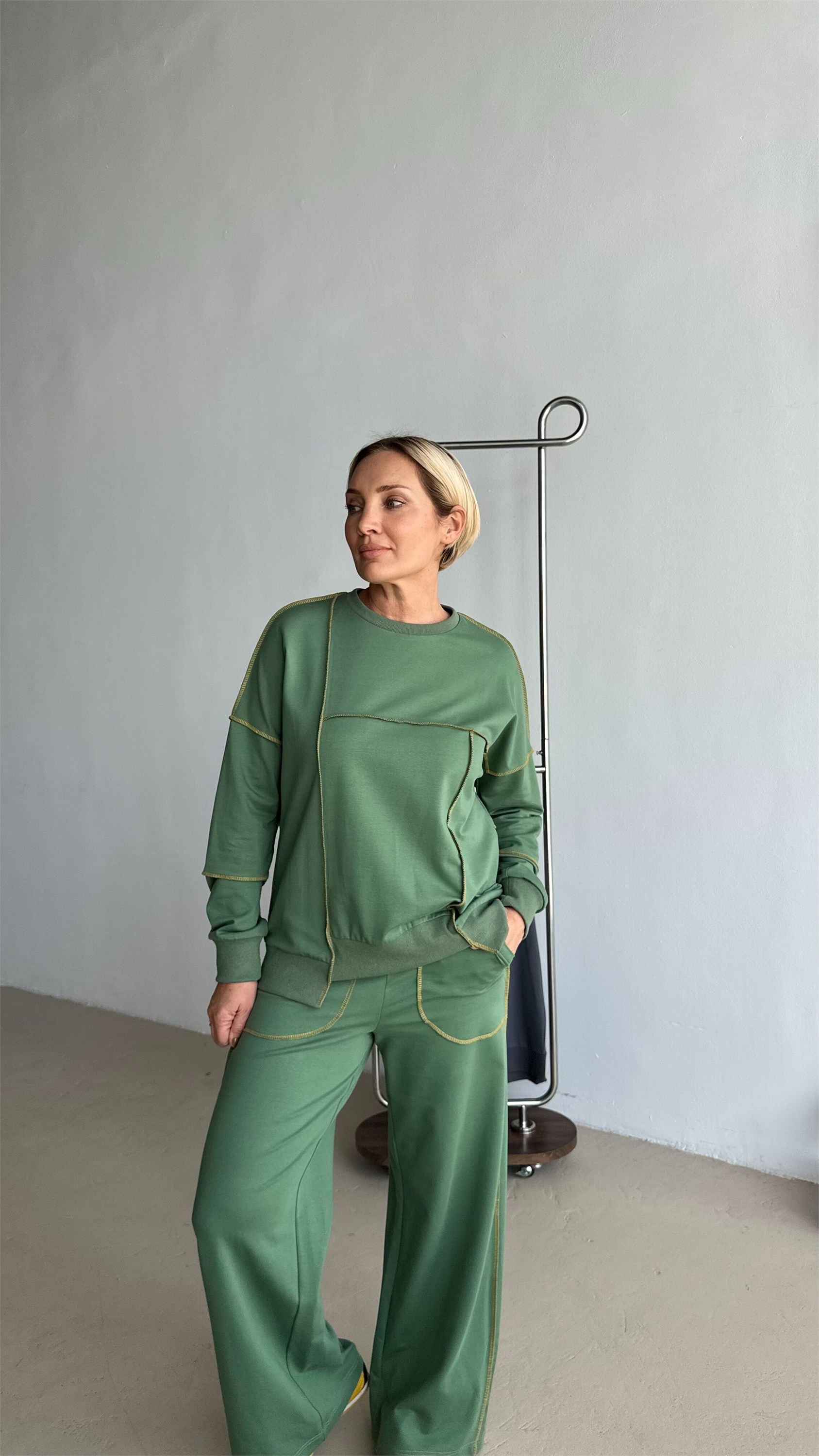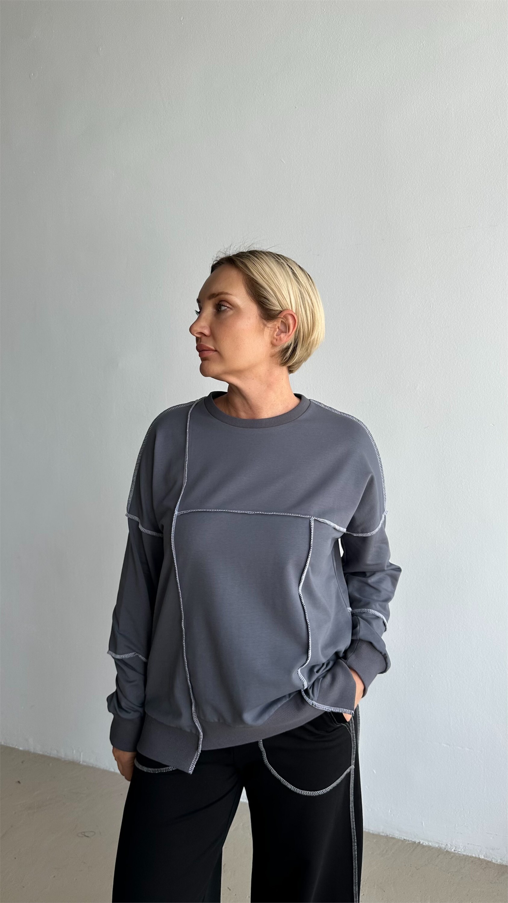 Модный и стильный свитшот, собранный из лоскутов, создает яркий и оригинальный образ. Обработка выполнена швами наружу и контрастными нитками, что придает свитшоту дерзкий и современный характер. Свободный силуэт обеспечивает комфорт и свободу движений, а втачные рукава с манжетами добавляют аккуратности и завершенности образу. Длина свитшота до линии бедер делает его универсальным элементом гардероба, идеально подходящим для создания стильных повседневных луков в стиле уличной моды или casual.Модель представлена в 5 расцветках-черный, молочный шоколад, спелая оливка, пепельно серый и маренго.Размерная линейка от 44 до 54 р.