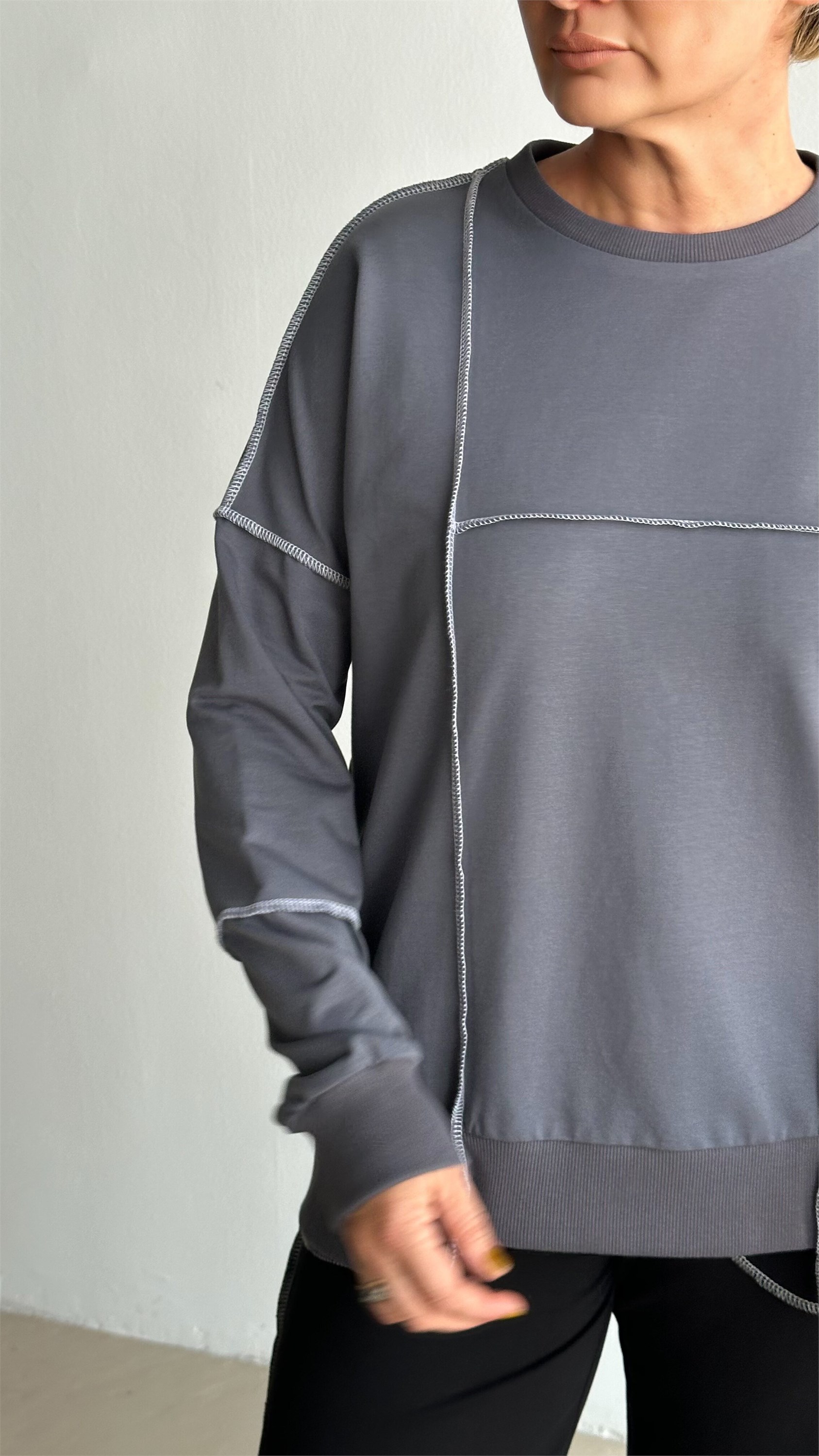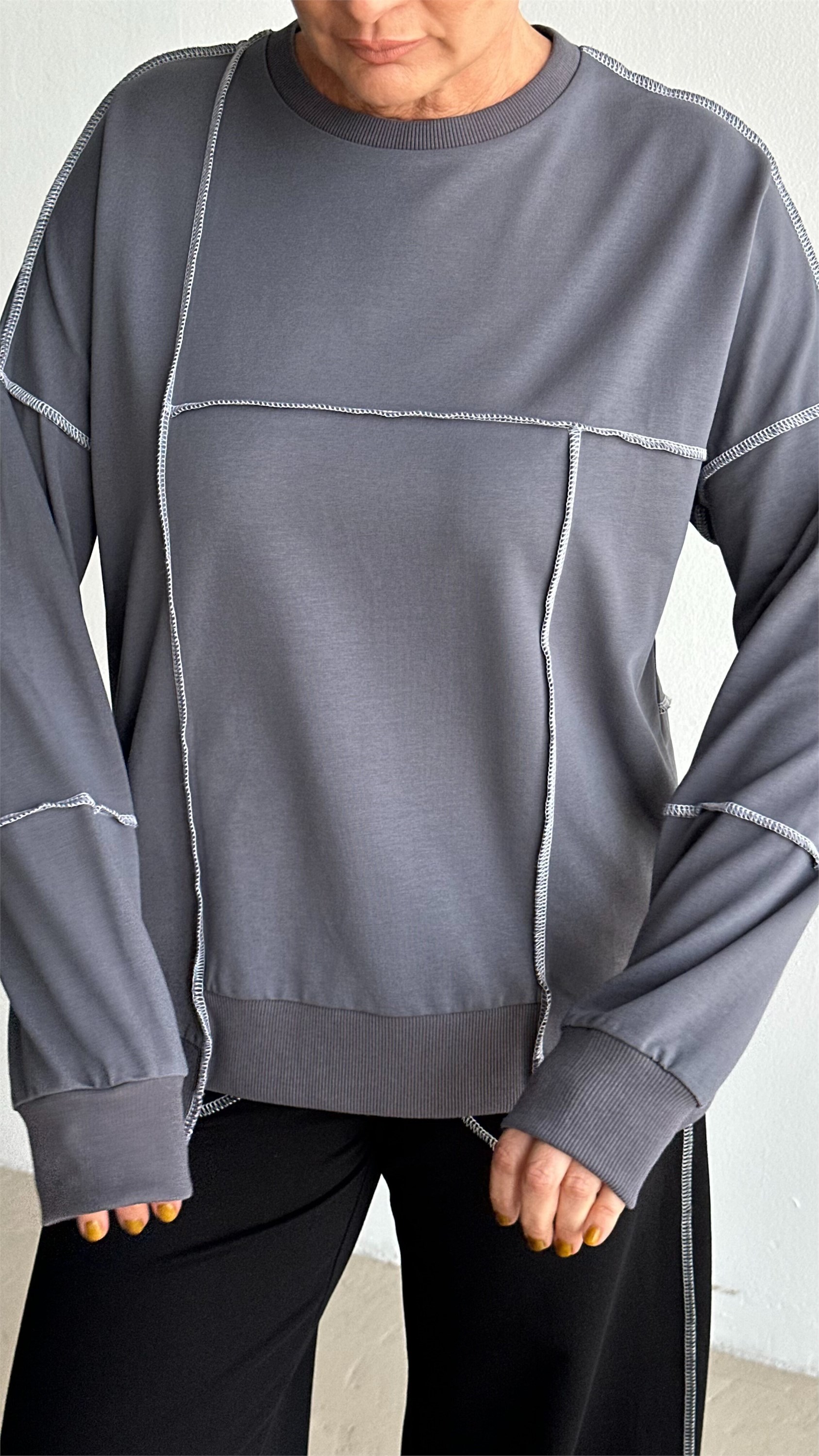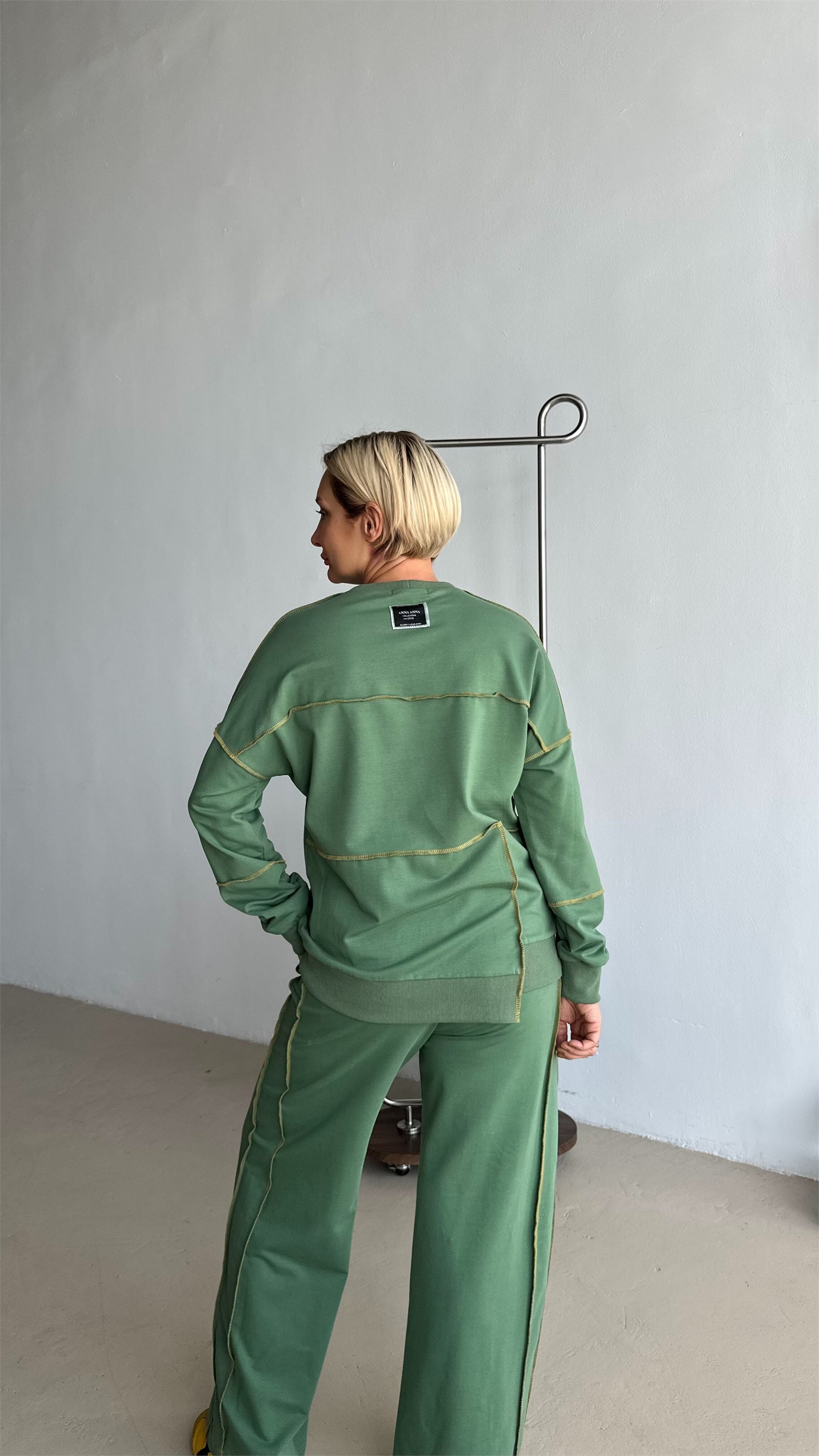 Модный и стильный свитшот, собранный из лоскутов, создает яркий и оригинальный образ. Обработка выполнена швами наружу и контрастными нитками, что придает свитшоту дерзкий и современный характер. Свободный силуэт обеспечивает комфорт и свободу движений, а втачные рукава с манжетами добавляют аккуратности и завершенности образу. Длина свитшота до линии бедер делает его универсальным элементом гардероба, идеально подходящим для создания стильных повседневных луков в стиле уличной моды или casual.Модель представлена в 5 расцветках-черный, молочный шоколад, спелая оливка, пепельно серый и маренго.Размерная линейка от 44 до 54 р.