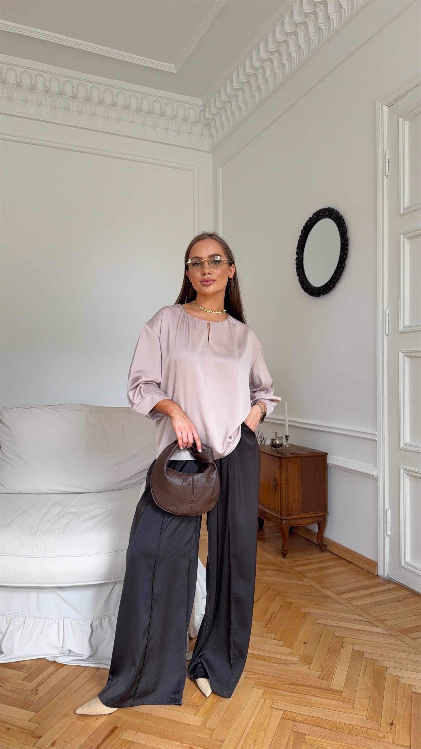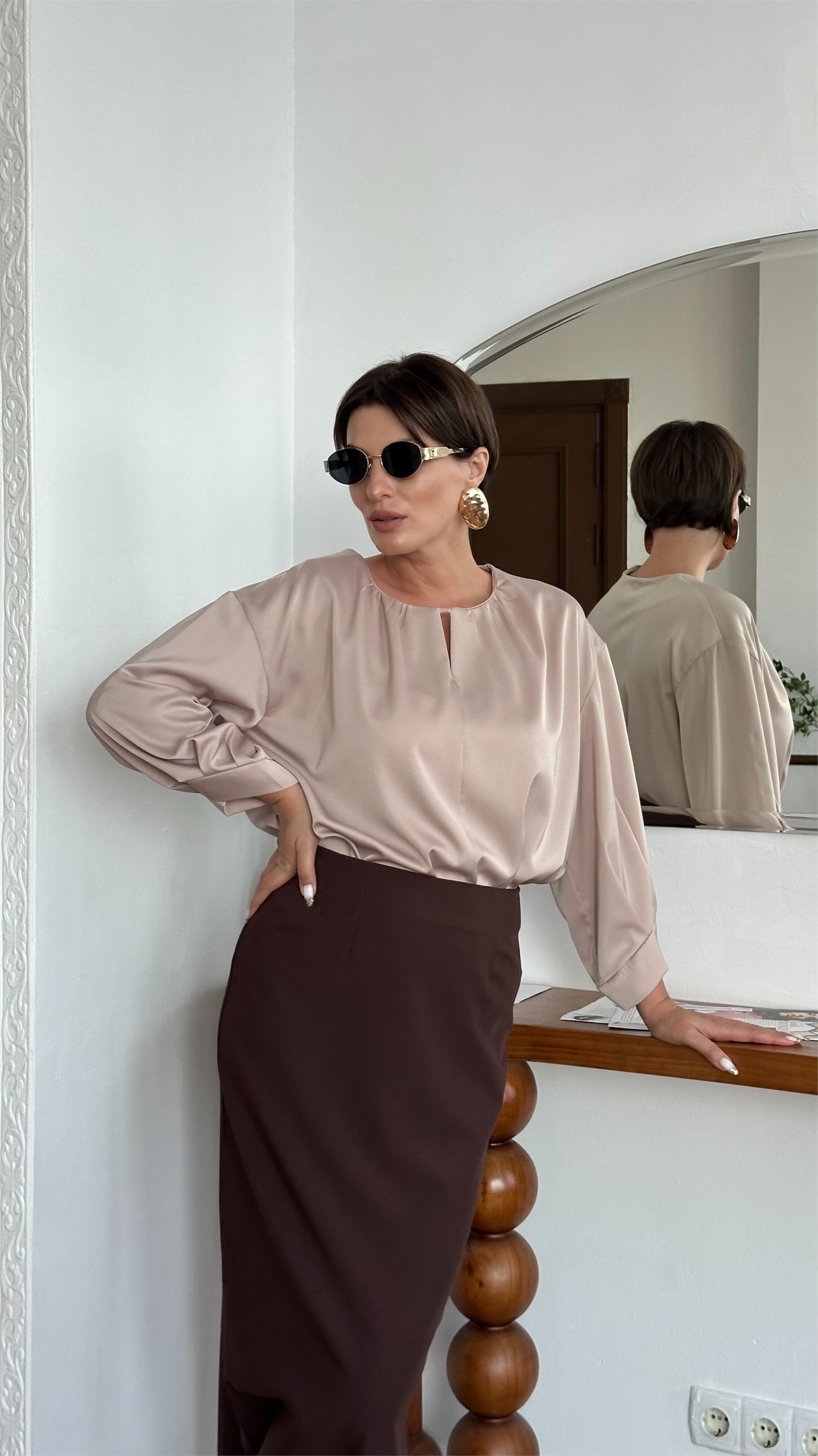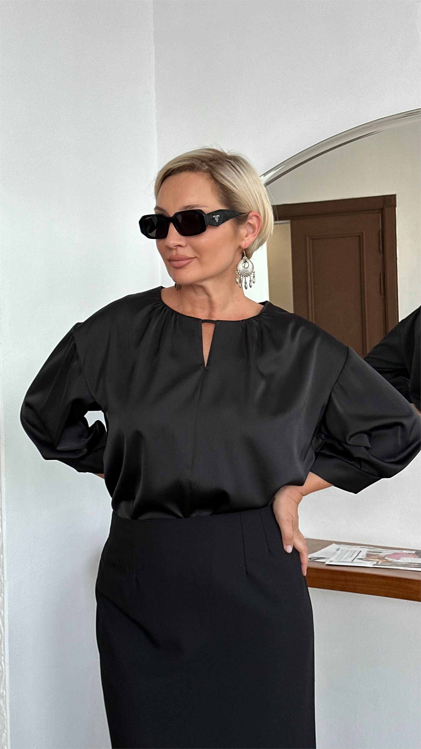 Эта элегантная блузка из высококачественного японского шелка станет идеальным дополнением Вашего гардероба. С круглой горловиной и изысканными декоративными завязками, она придаст Вашему образу утончённость и стиль. Свободный силуэт обеспечивает комфорт и свободу движений, а рукава с декоративными манжетами добавляют нотку романтики и оригинальности. Лёгкая и воздушная, эта блузка прекрасно сочетается как с классическими брюками, так и с юбками, создавая разнообразные стильные образы для любого случая.