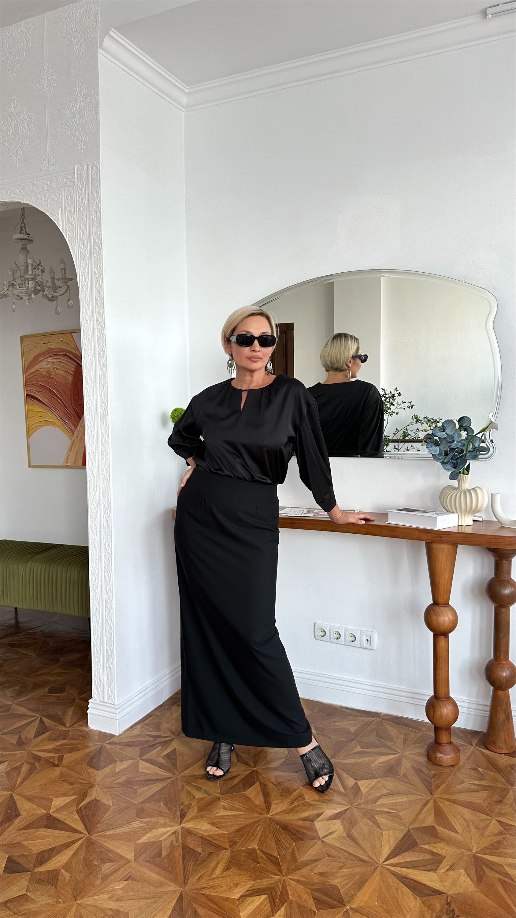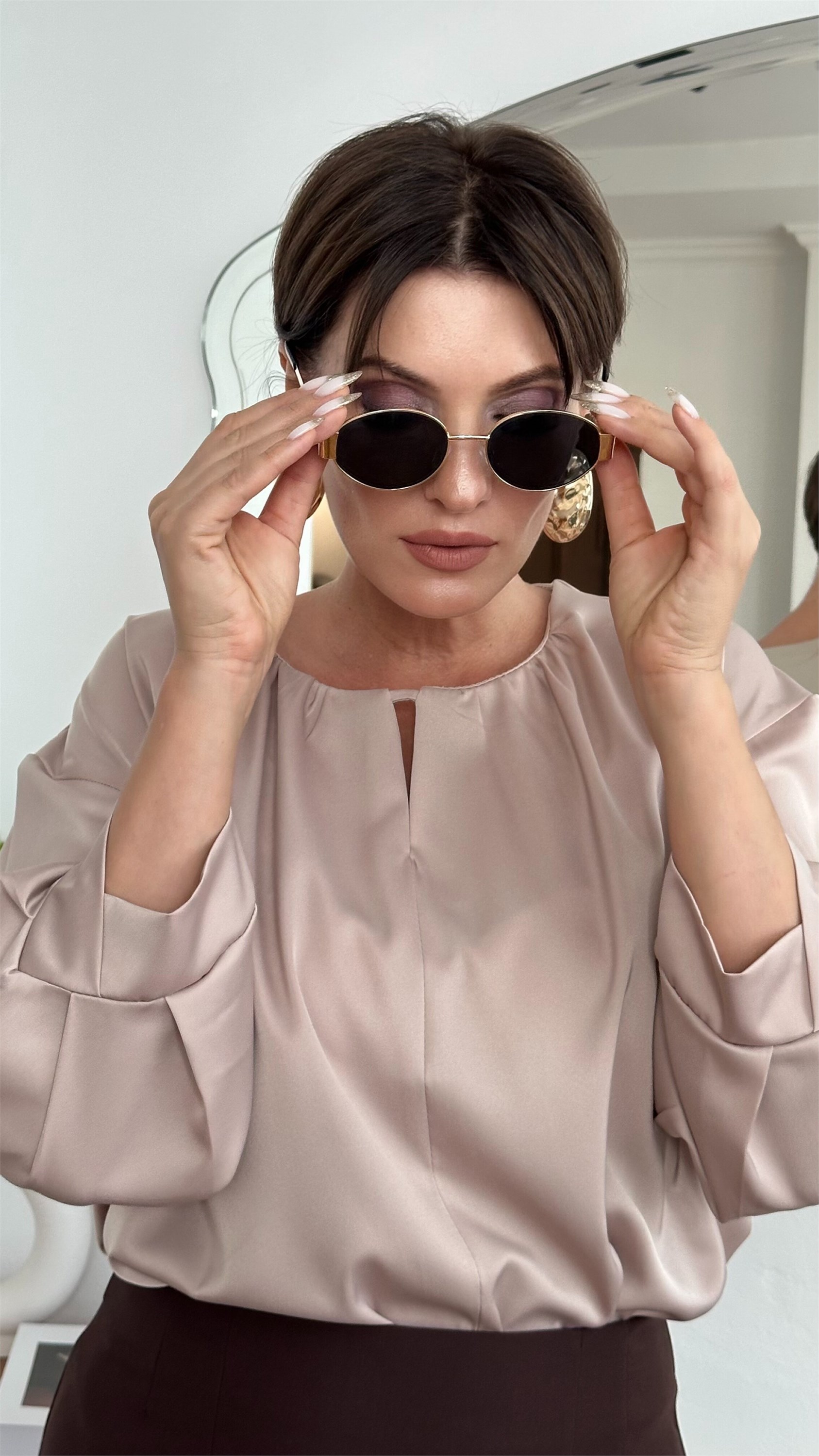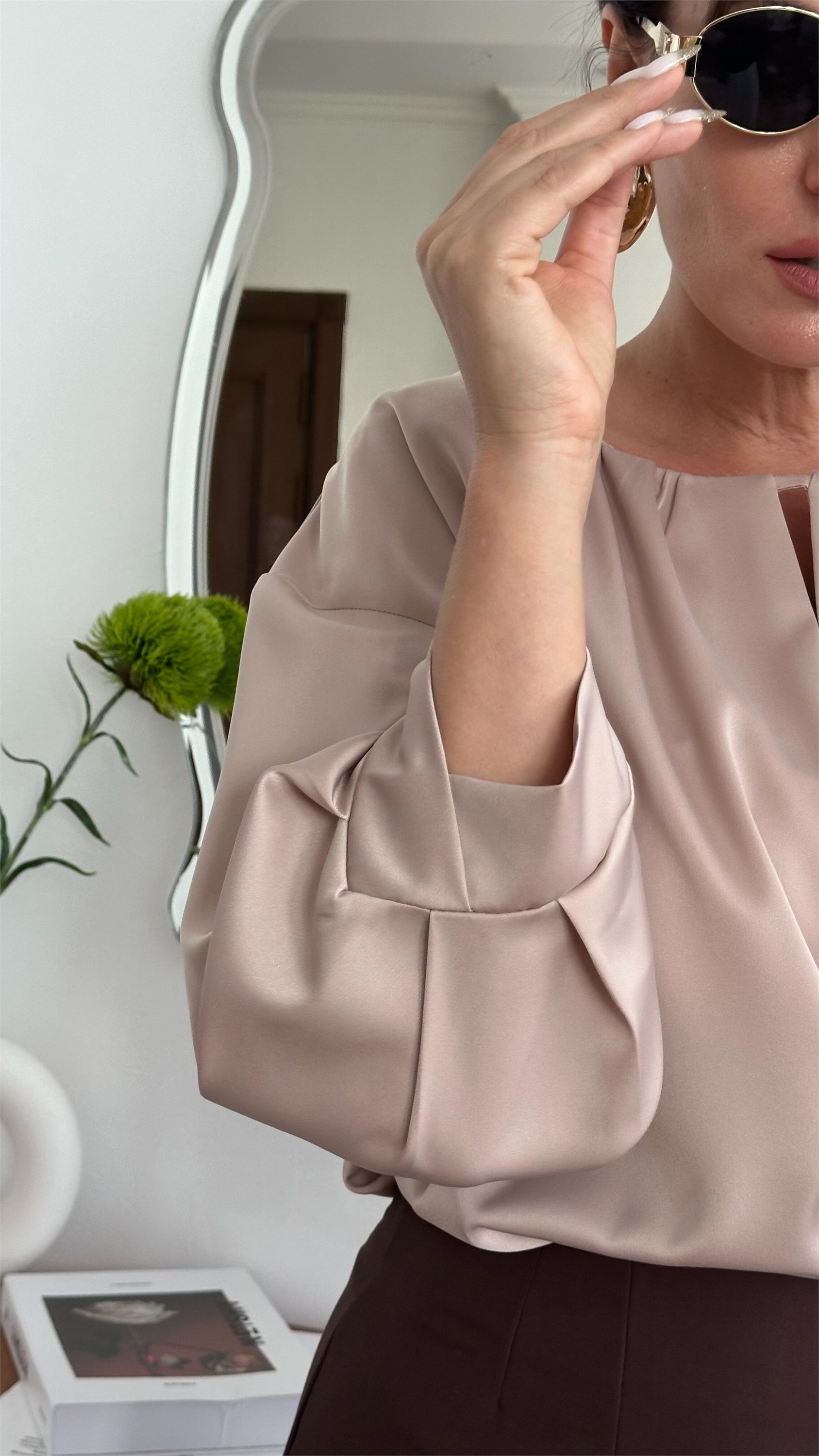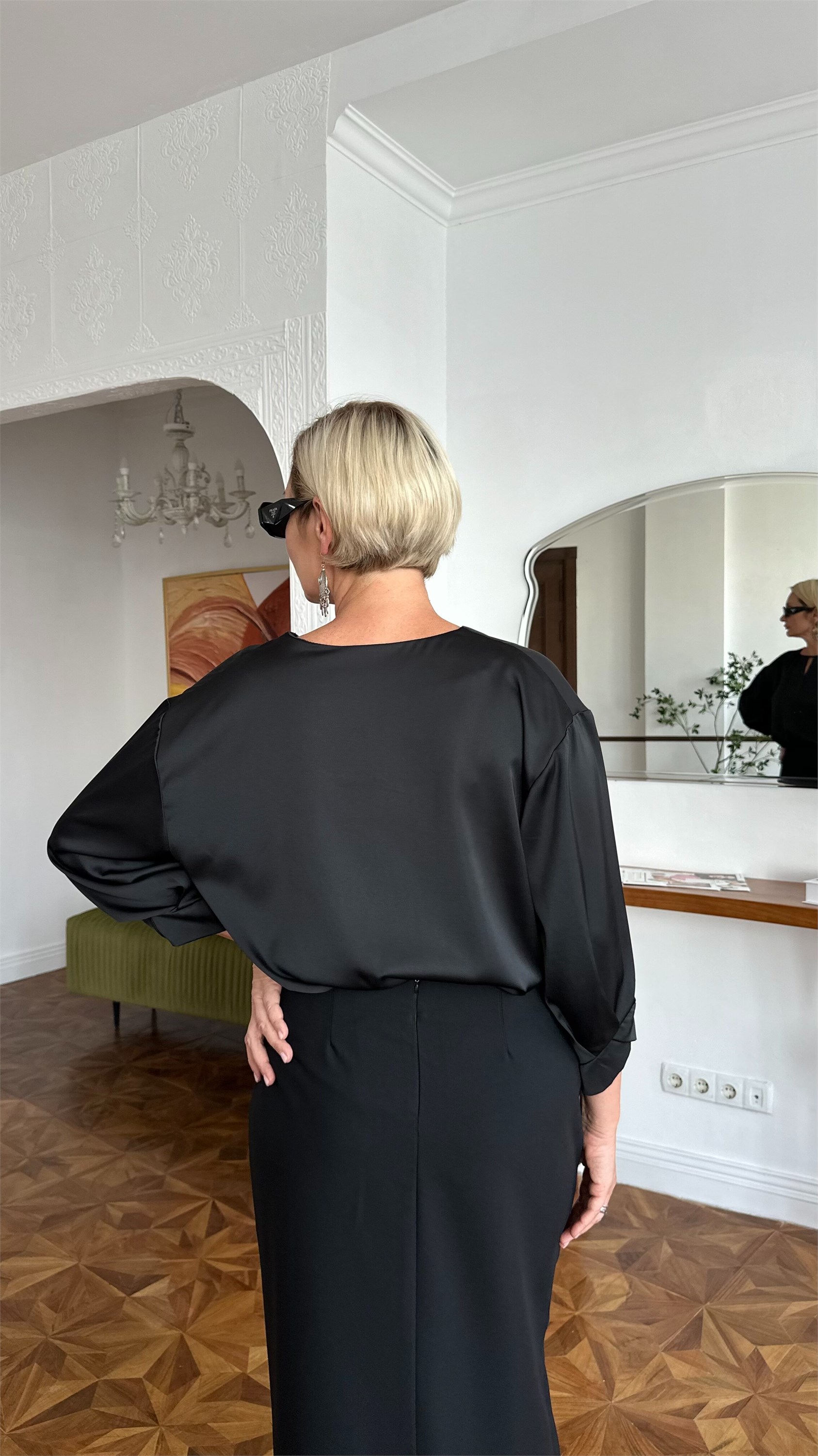 Эта элегантная блузка из высококачественного японского шелка станет идеальным дополнением Вашего гардероба. С круглой горловиной и изысканными декоративными завязками, она придаст Вашему образу утончённость и стиль. Свободный силуэт обеспечивает комфорт и свободу движений, а рукава с декоративными манжетами добавляют нотку романтики и оригинальности. Лёгкая и воздушная, эта блузка прекрасно сочетается как с классическими брюками, так и с юбками, создавая разнообразные стильные образы для любого случая.