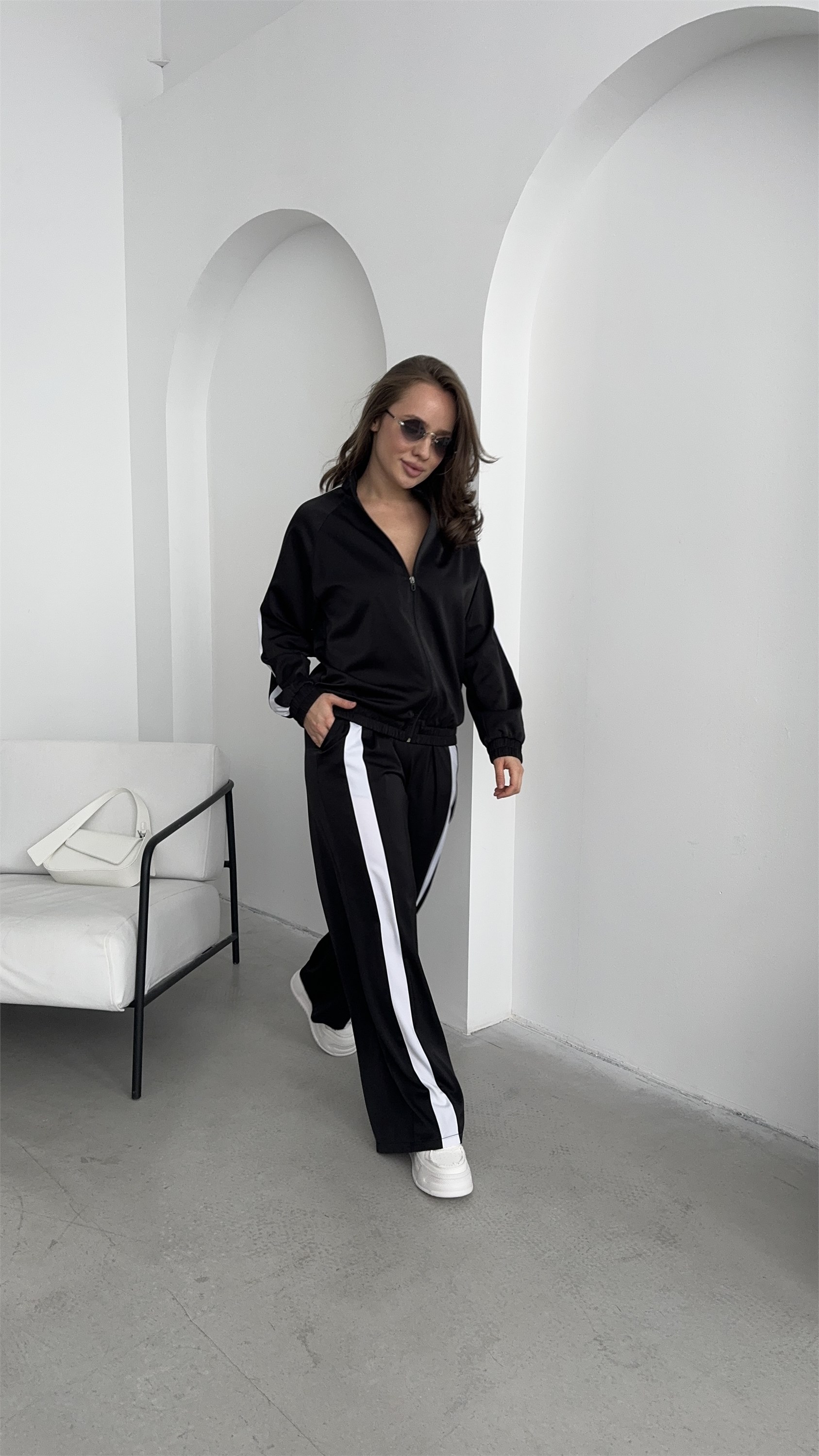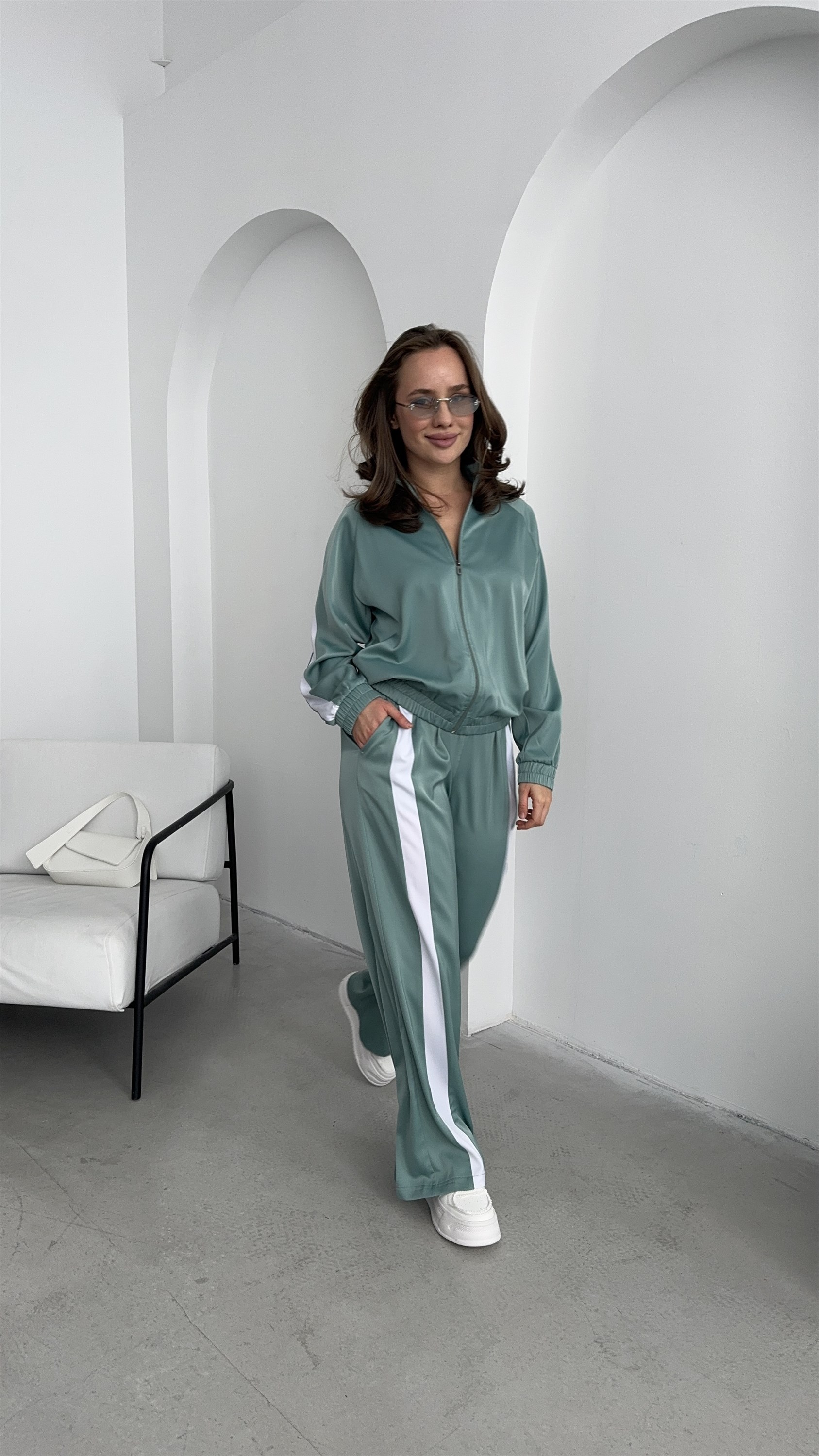 Куртка-бомбер с застежкой "молнией". Рукава реглан с контрастной вставкой, манжеты и пояс на эластичной резиновой тесьме, воротник "стойка".