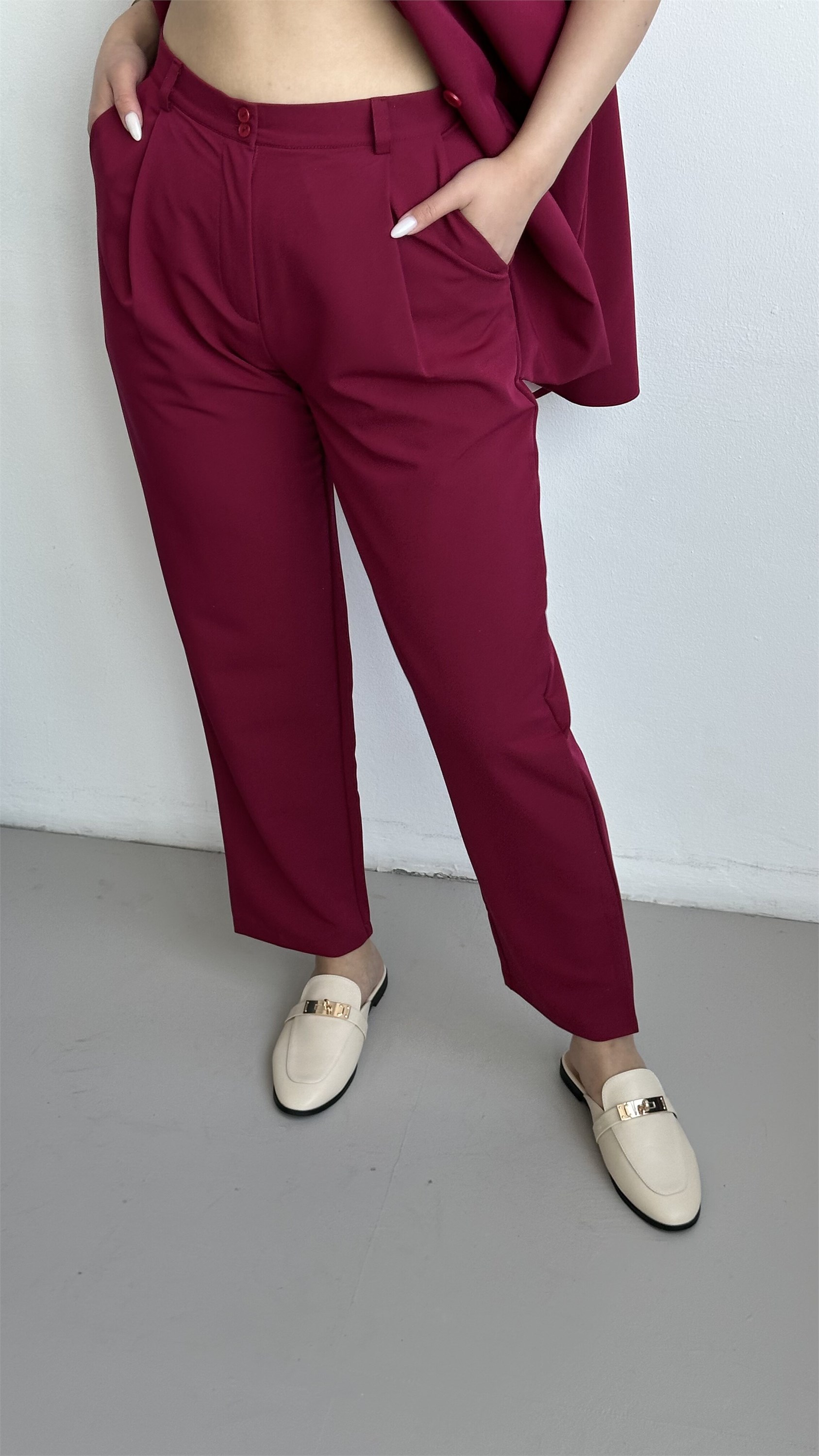 Классические укороченные брюки на высокой посадке и заужены к низу, позволят выглядить стильно и красиво.Пояс притачной по задней части на резинке.Застежка молния и 2 пуговицы.По передней части мягкие защипы.Размерная линейка от 44 до 52 р.Модель представлена в двух расцветках- бургундий и серый беж.