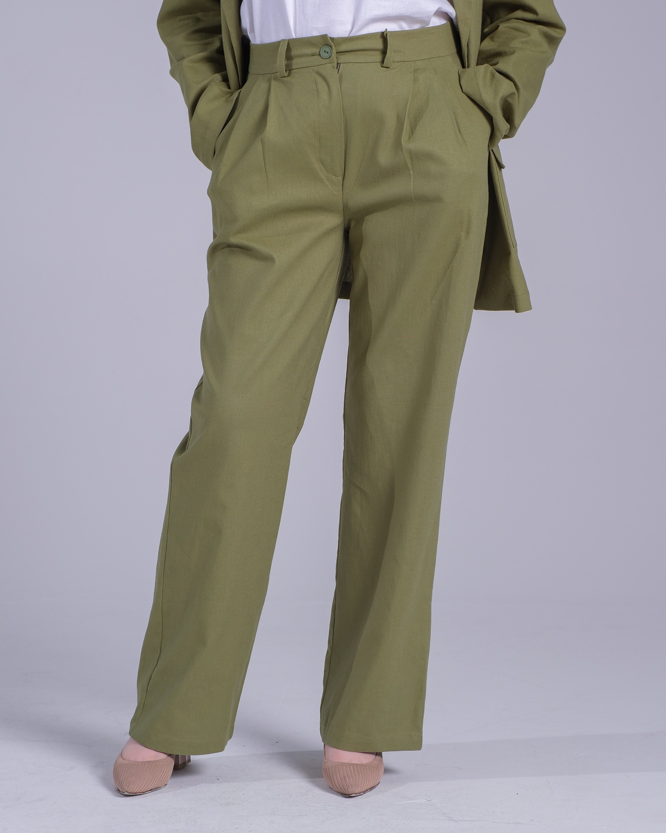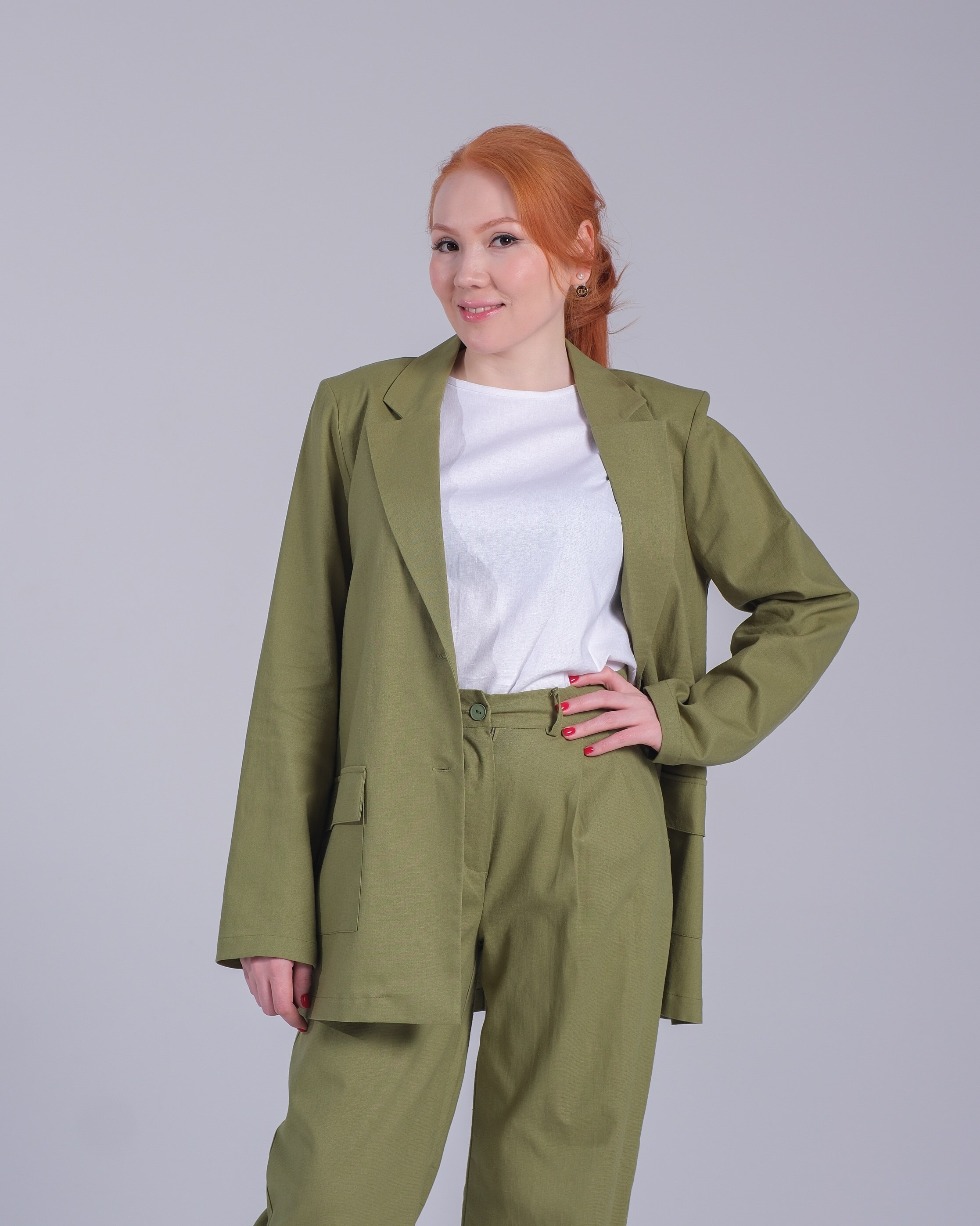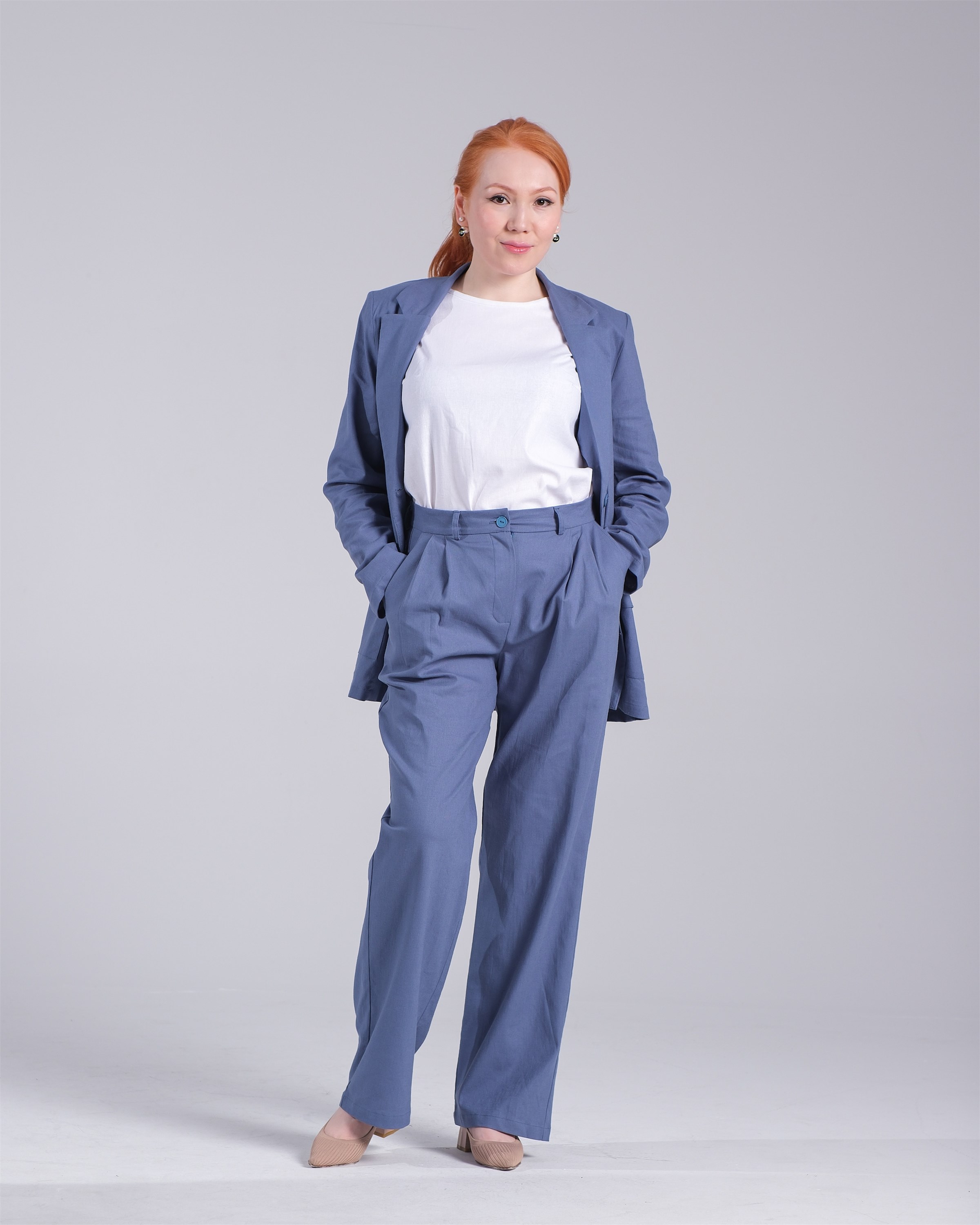 ***Тік, кең пішімді толық ұзындықтағы шалбар. Бүйір тігістерінде қалатсы бар. Гульфик сыдырма түймелікке және түймеге бекітілген.