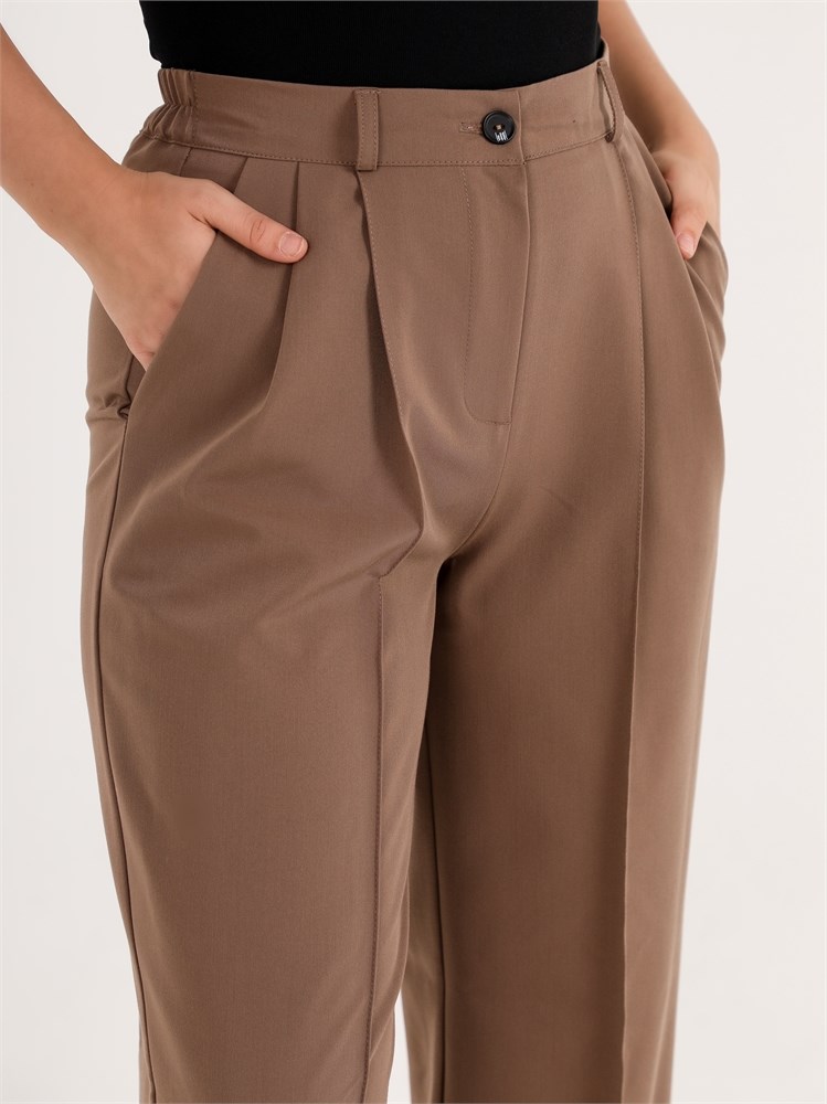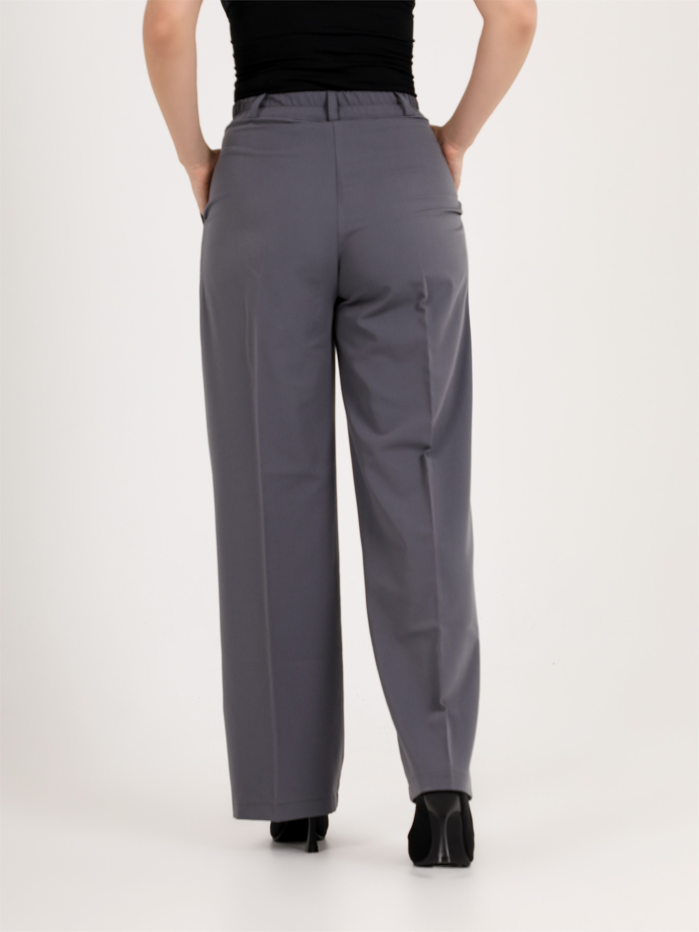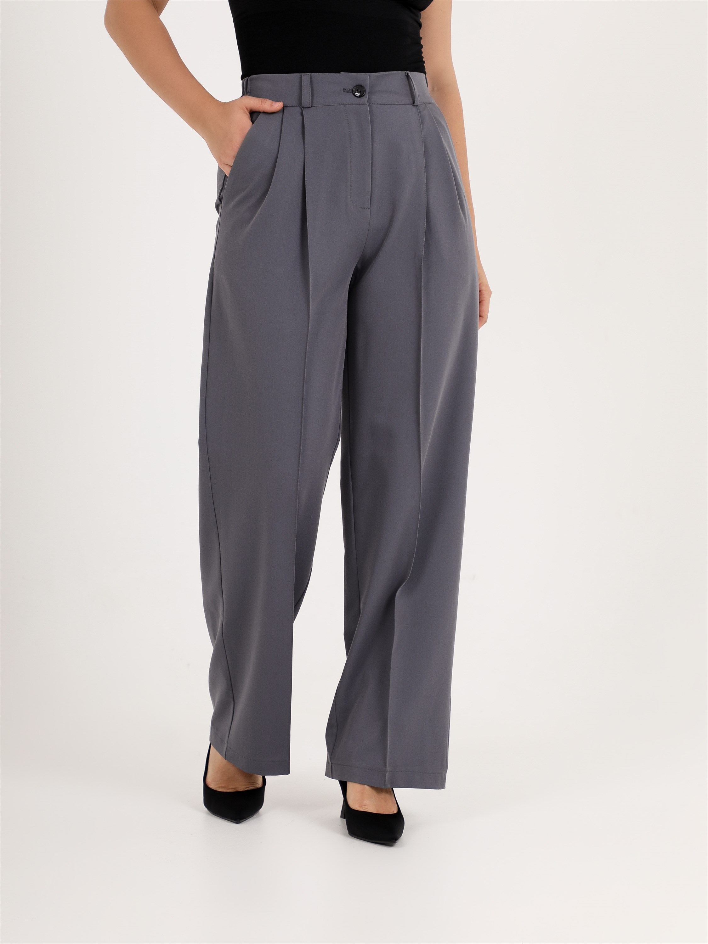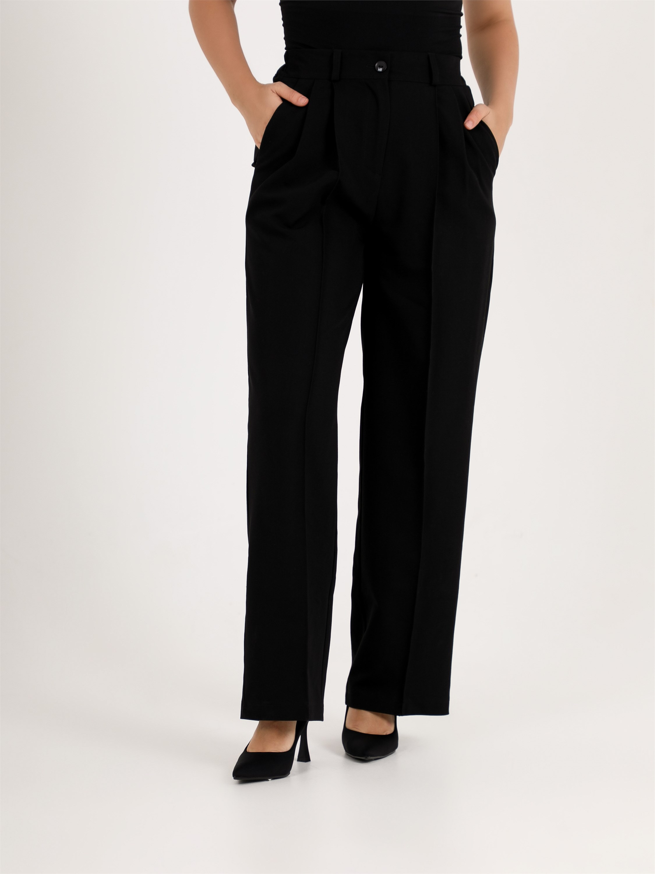 ***Кең пішімді бел тұсында бүкпелері бар шалбар. Бүйір тігісінде қалтасы және гульфик түймеге бекітілген