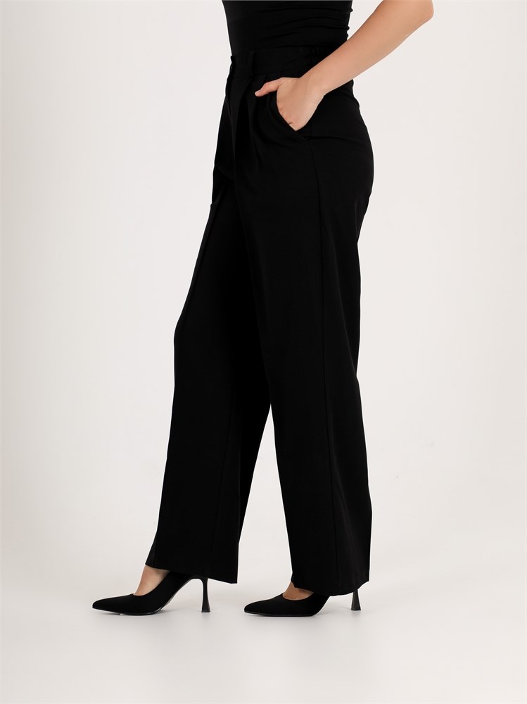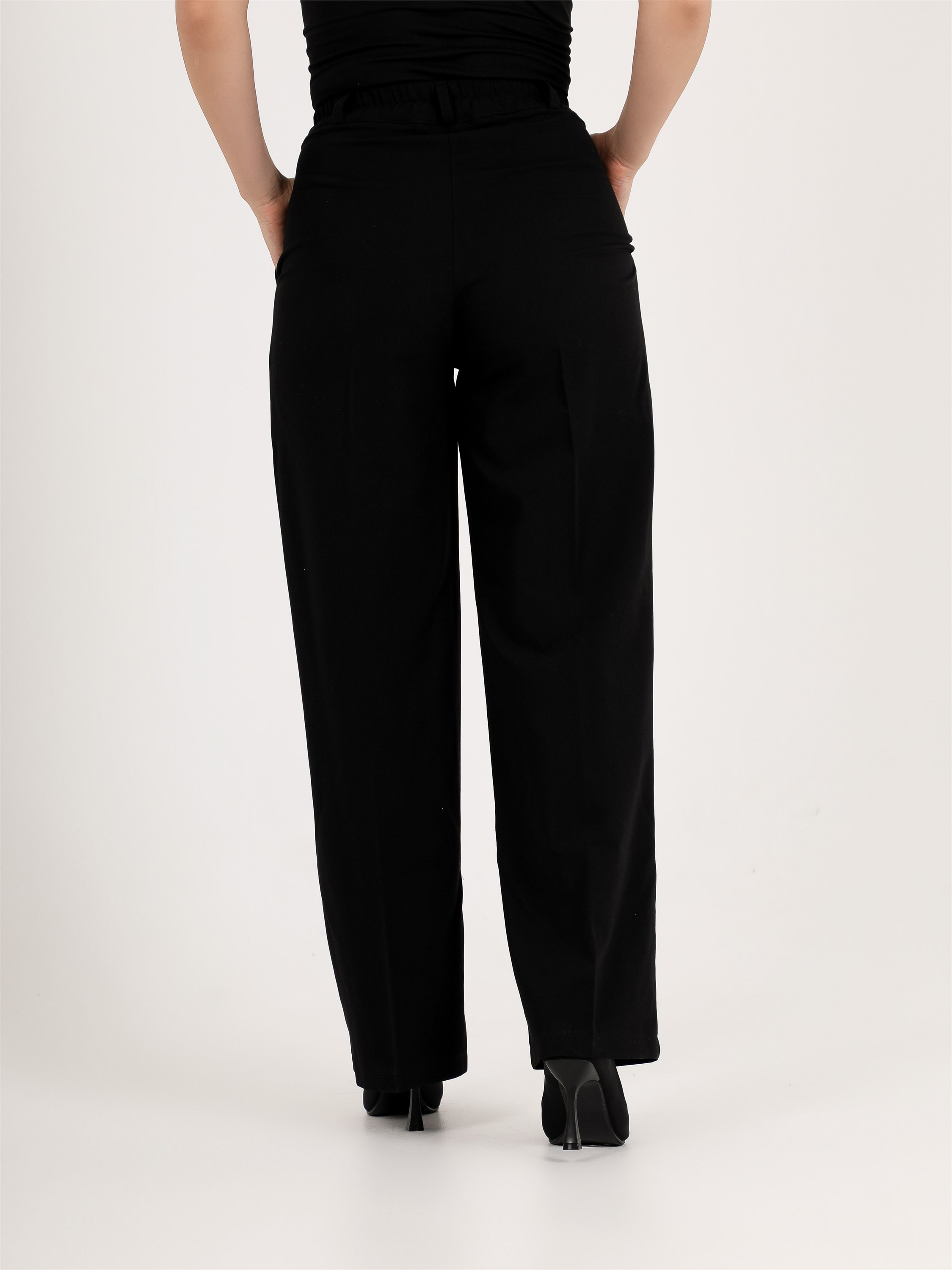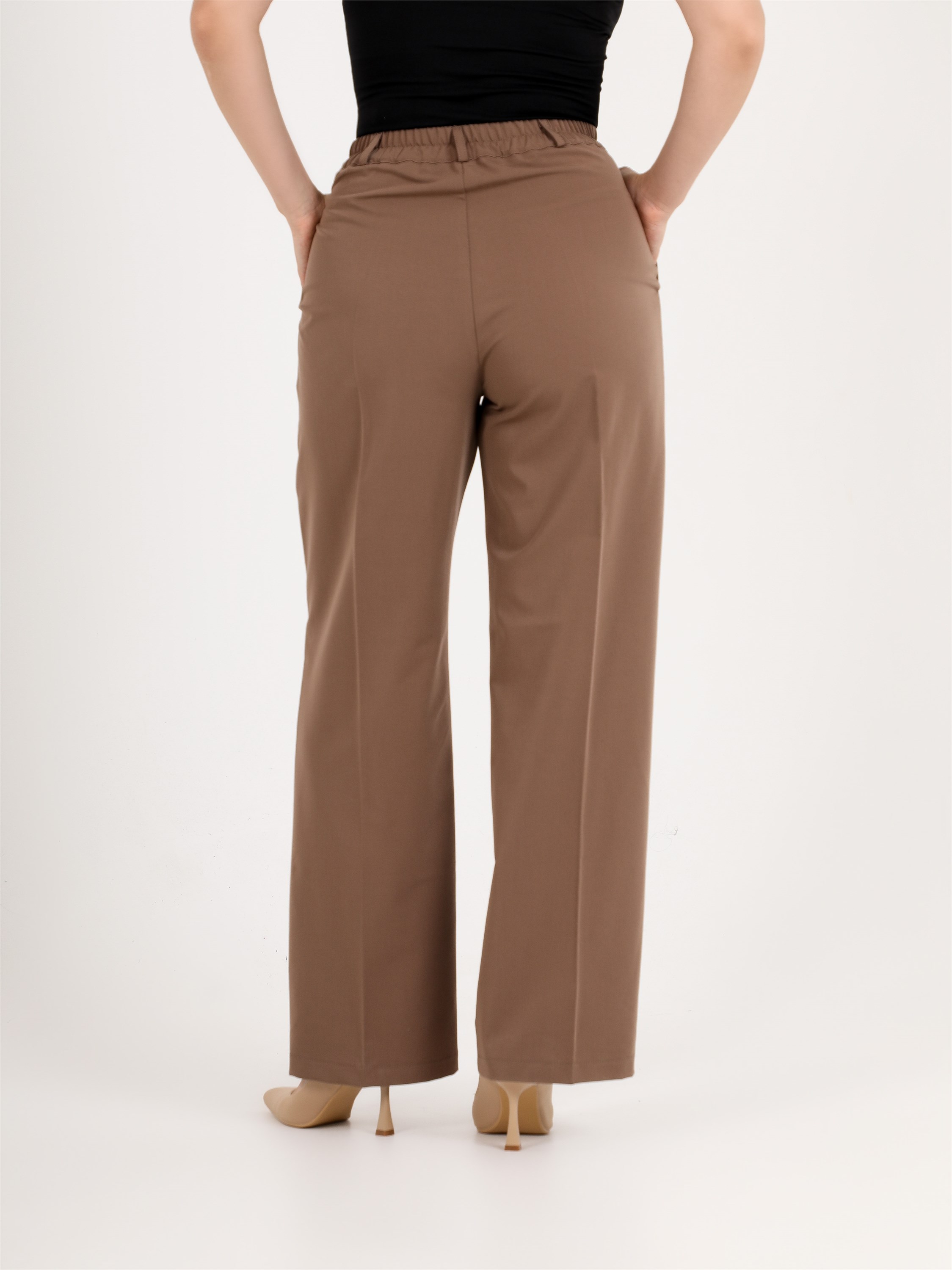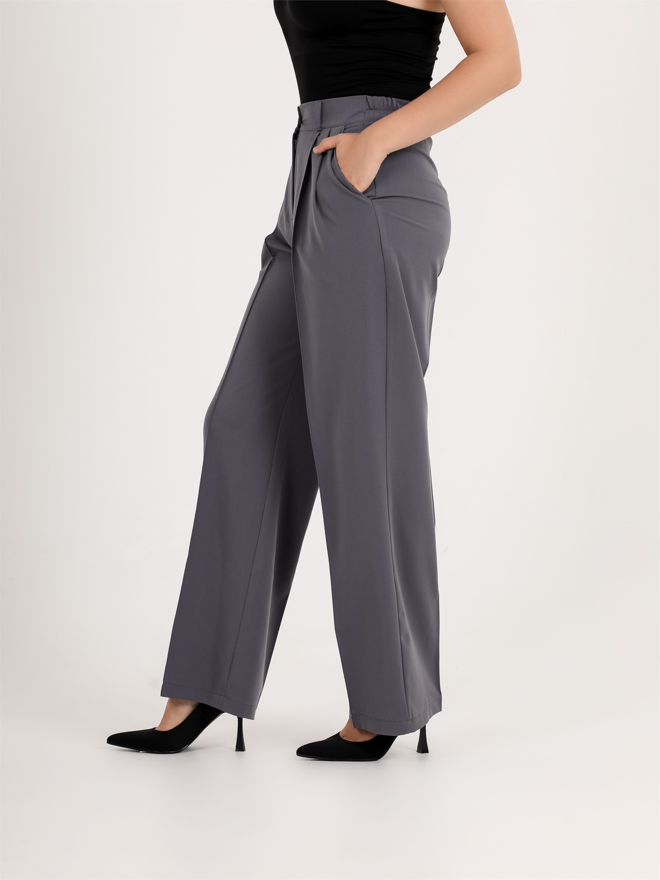 ***Кең пішімді бел тұсында бүкпелері бар шалбар. Бүйір тігісінде қалтасы және гульфик түймеге бекітілген