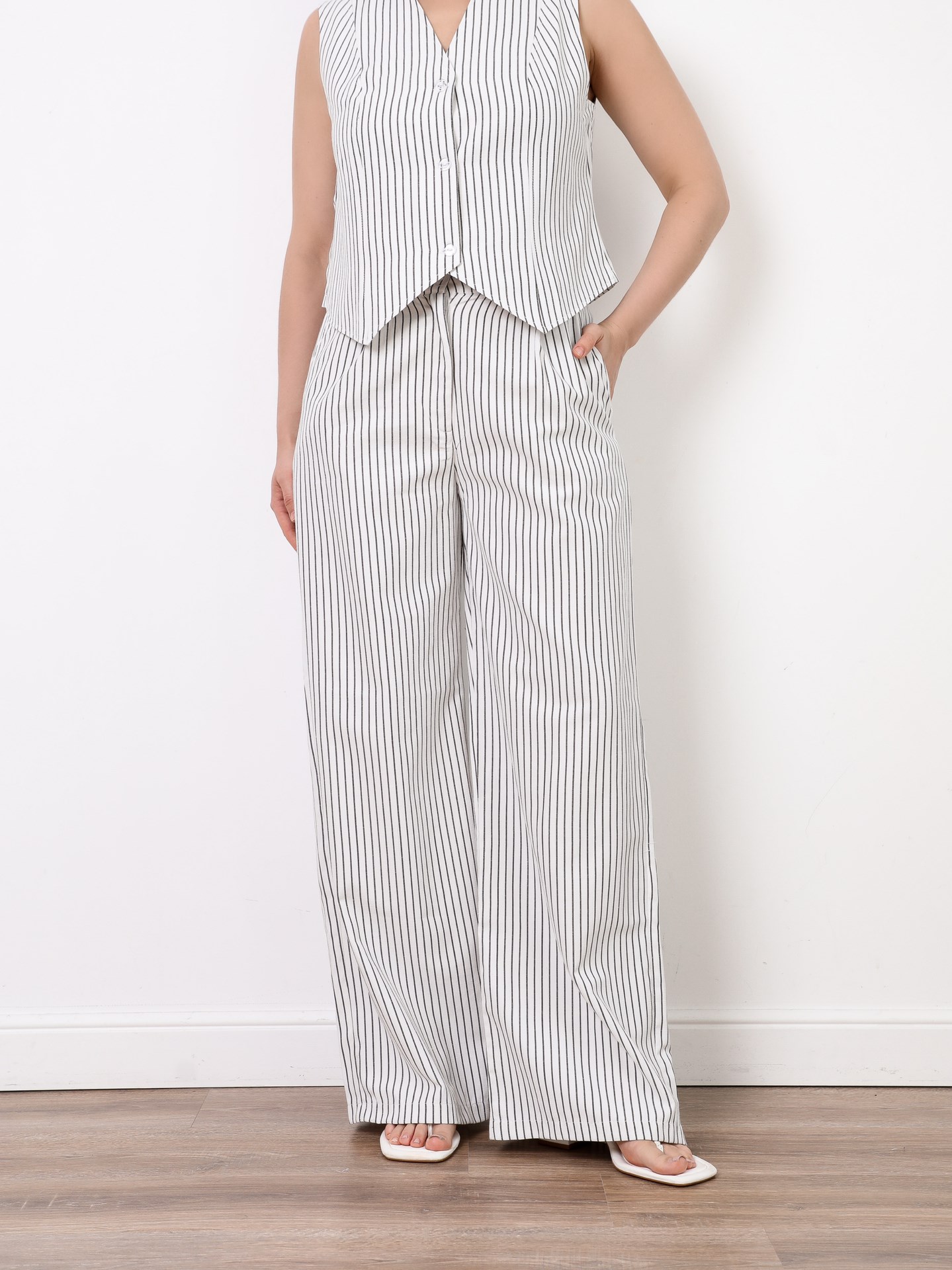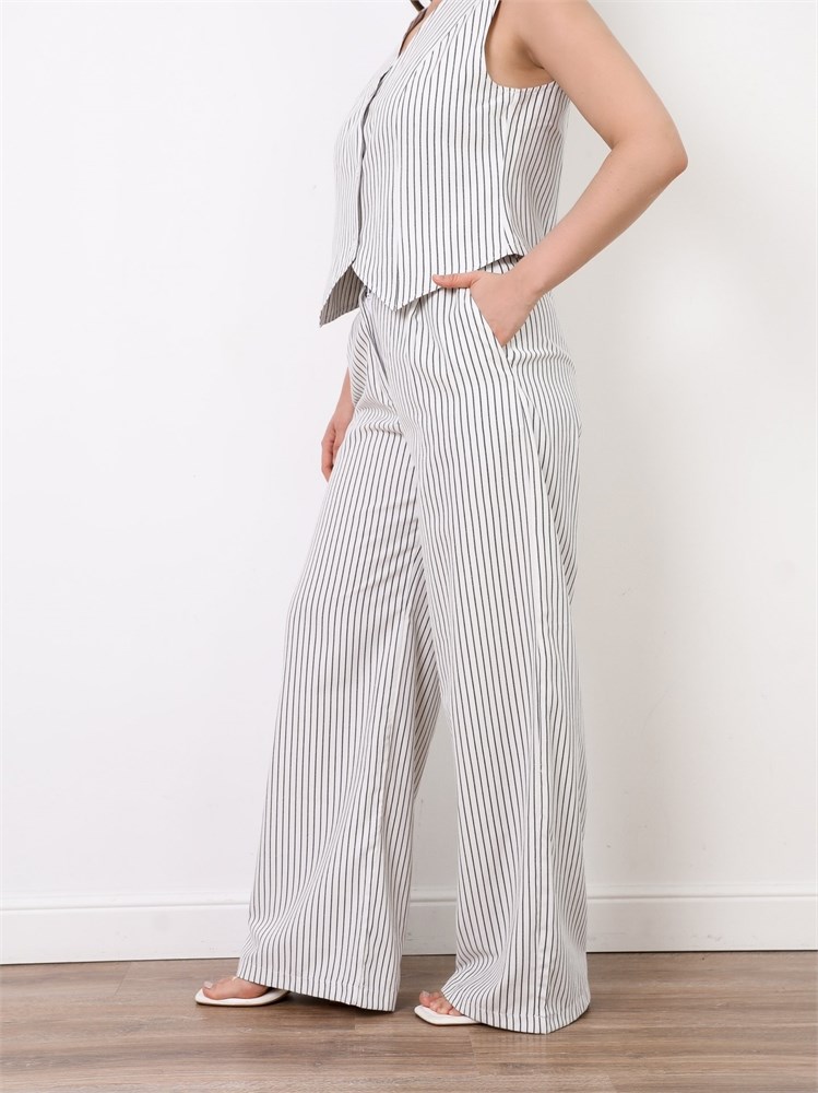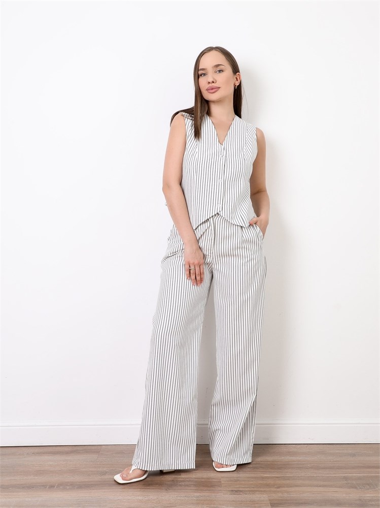 Брюки полной длины изо льна свободного кроя. Высокая посадка с функциональными застежками на пуговице и молнии "гульфик". На передней половине брюк присутствуют защипы обеспечающие свободу движения в области беред, также есть функциональные карманы в шве