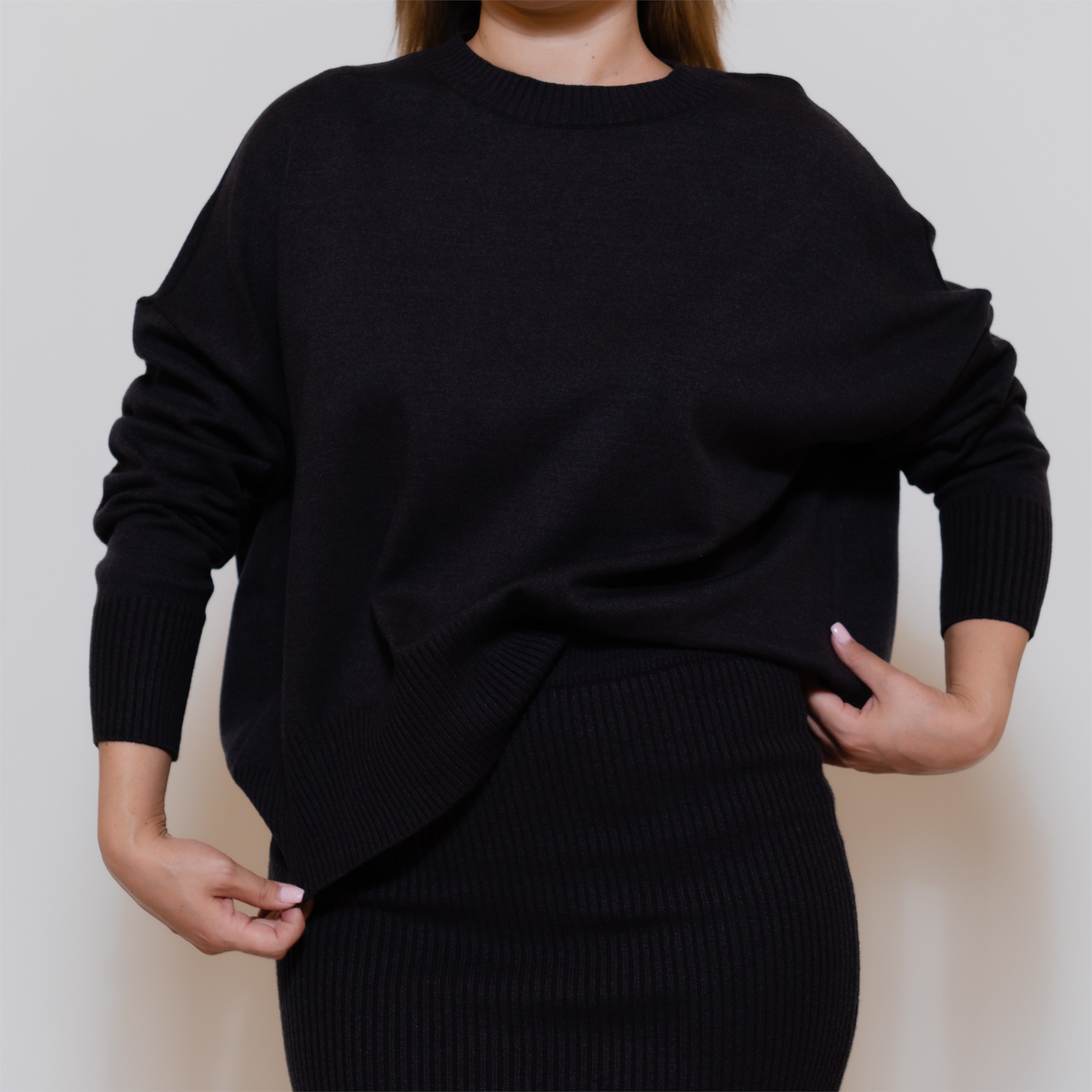 ***Кең силуэтте иығы төмен пішілген тоқыма жемпірі. Ұзындығы бөксе тұсына дейін