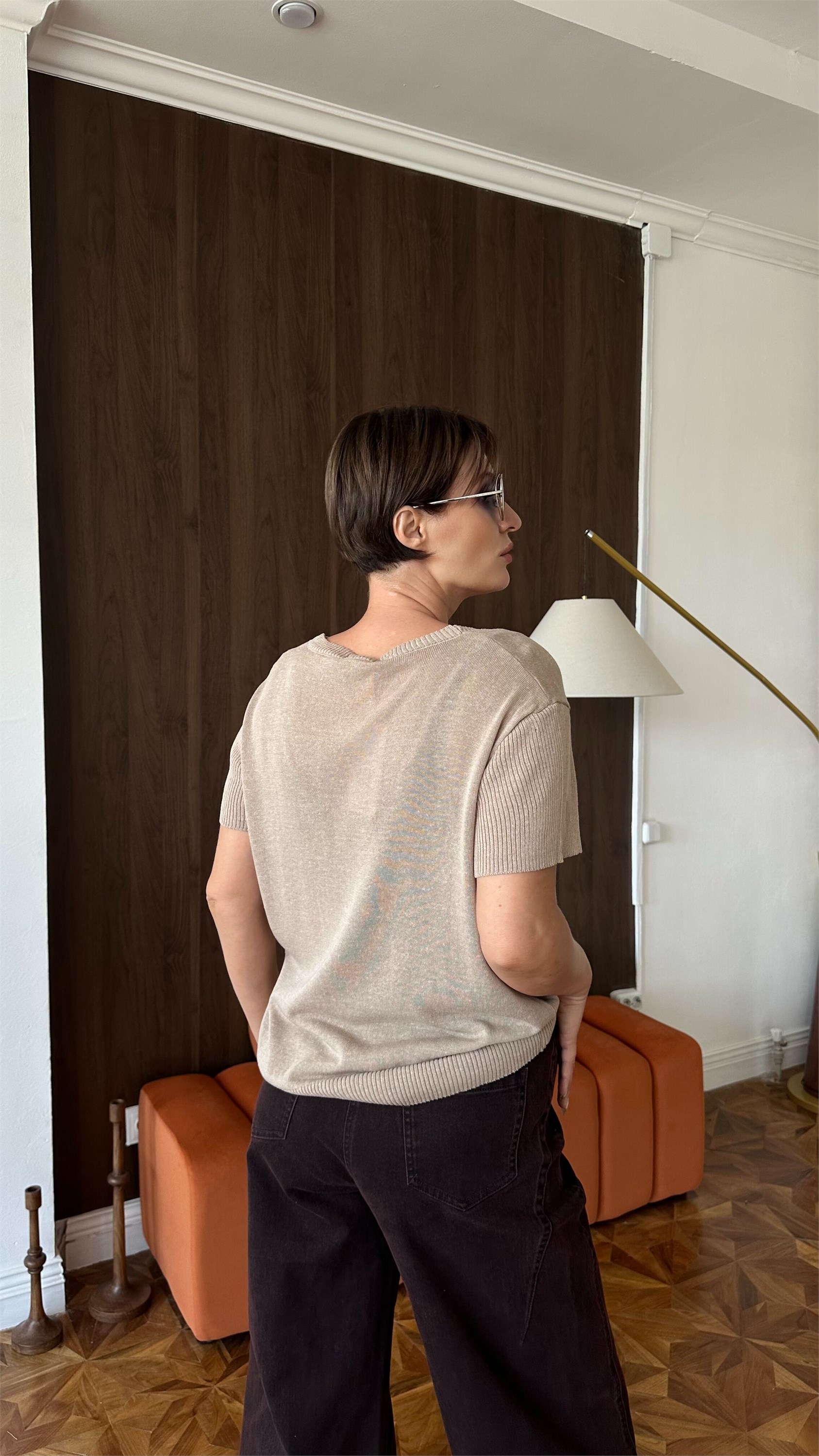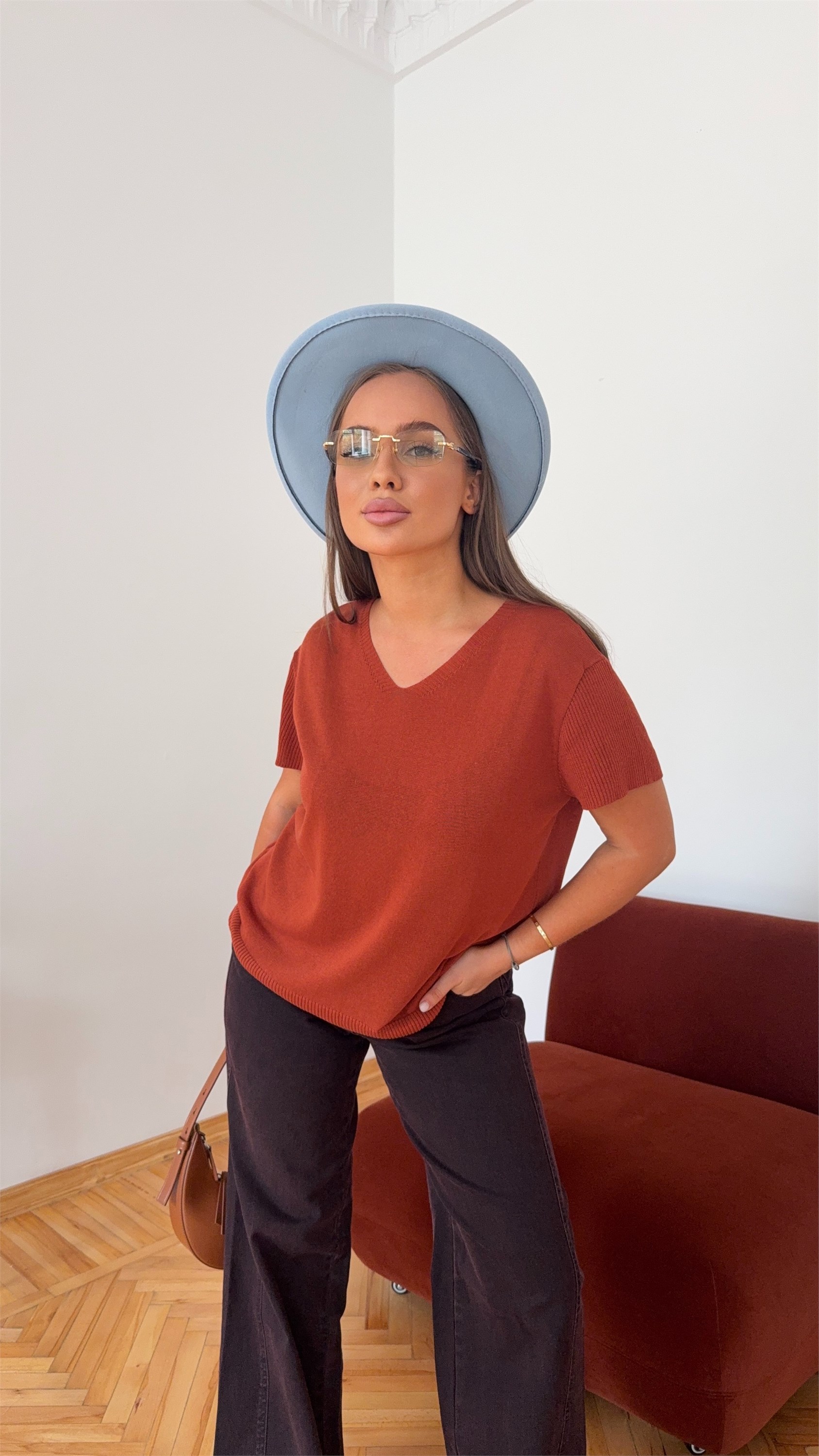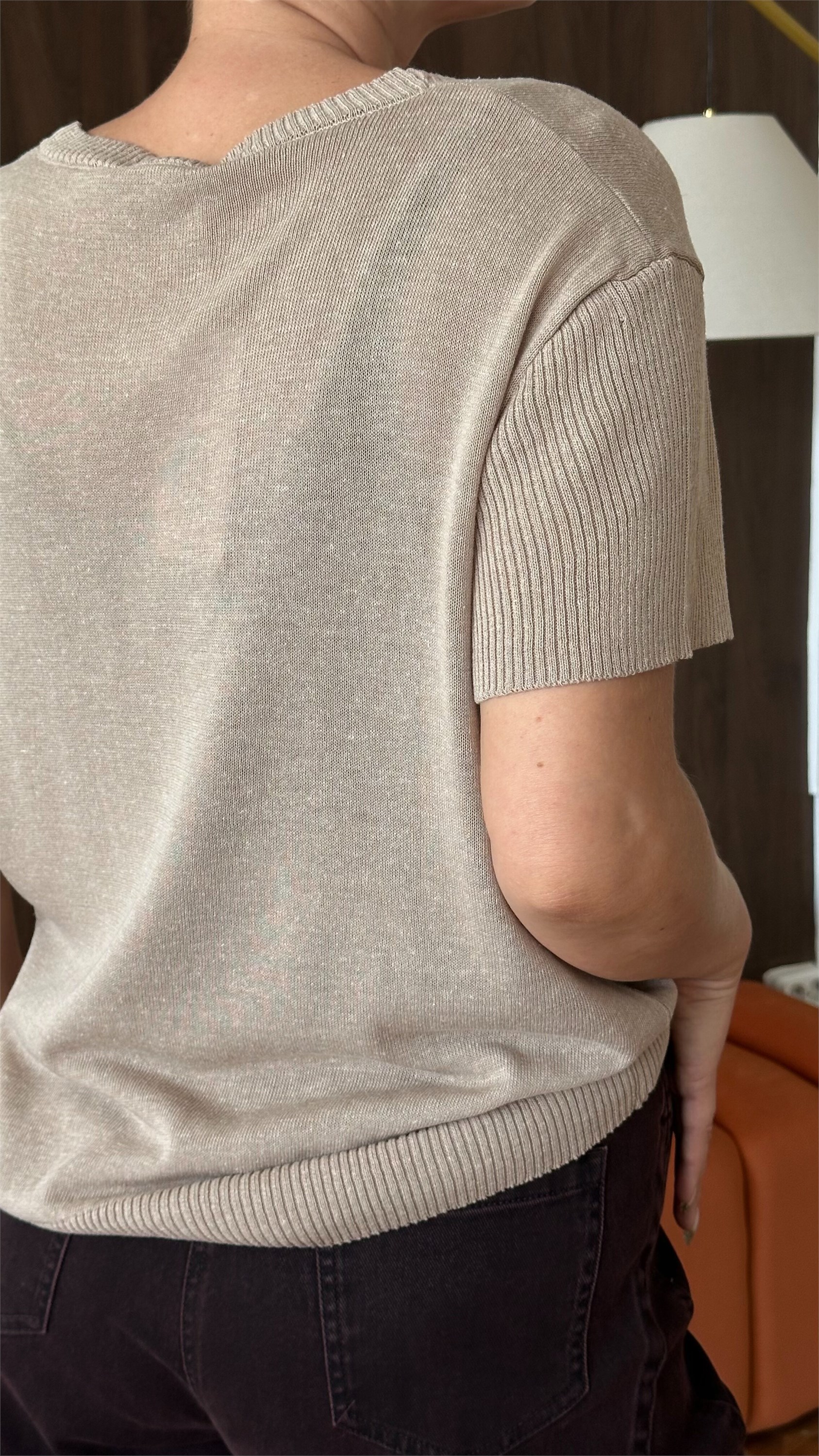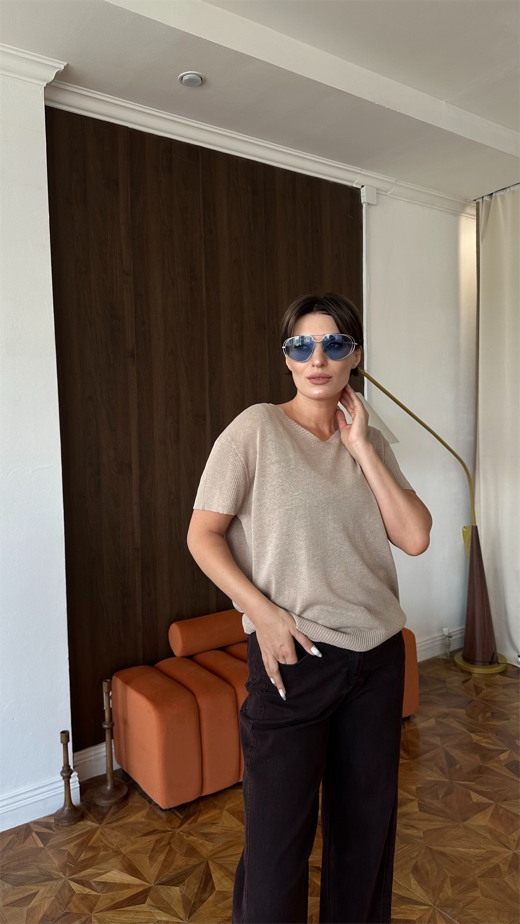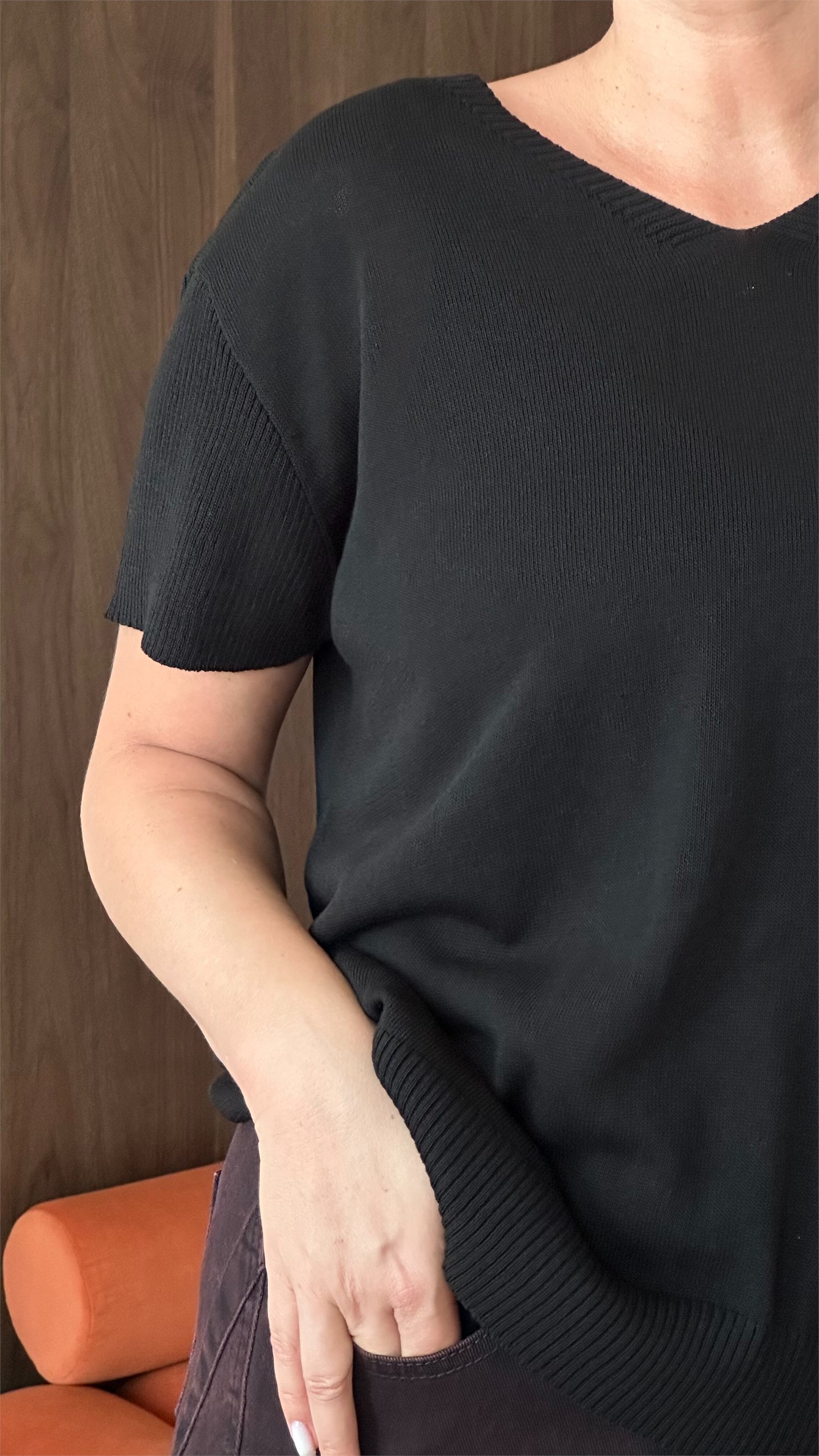 Тонкий вязаный джемпер с коротким рукавом — универсальная и стильная вещь для базового гардероба. Модель выполнена из мягкого, дышащего материала, приятного к телу. V-образный вырез подчёркивает линию шеи и добавляет образу женственности, а аккуратные короткие рукава делают джемпер идеальным для тёплого сезона или многослойных сочетаний. Эластичная резинка по низу обеспечивает комфортную посадку и подчёркивает силуэт. Отлично сочетается как с джинсами и брюками, так и с юбками — для создания как повседневного, так и более собранного образа.Размер free size.Модель представлена в черном безовом цвете, цвете грейпфрут,песочном и оливковом.