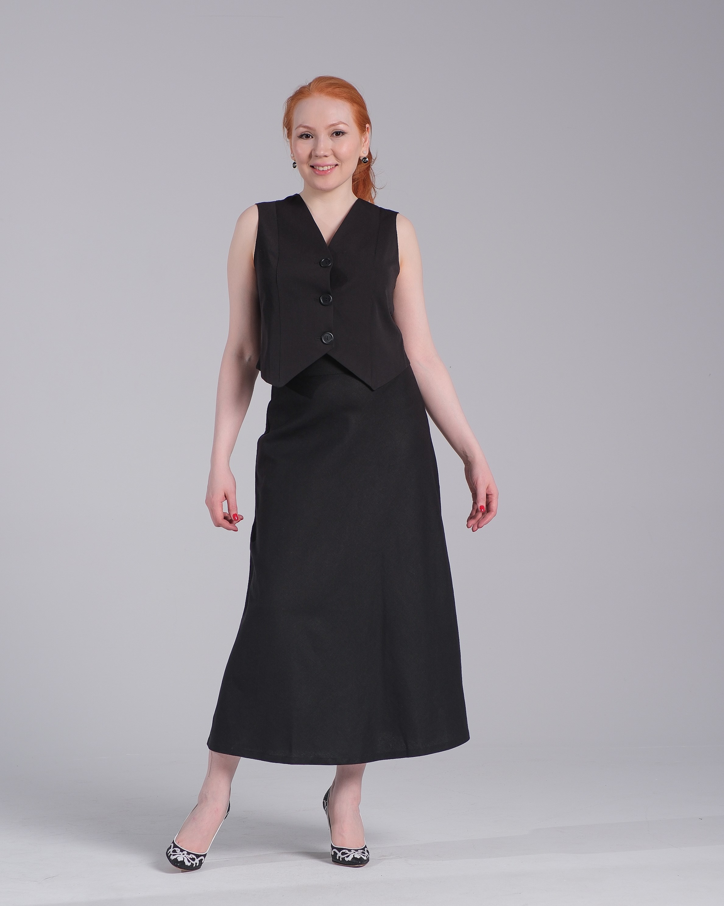 ***Конус пішімді, балтырға дейінгі ұзындықтағы белдемше. Сыдырма түймелікте.