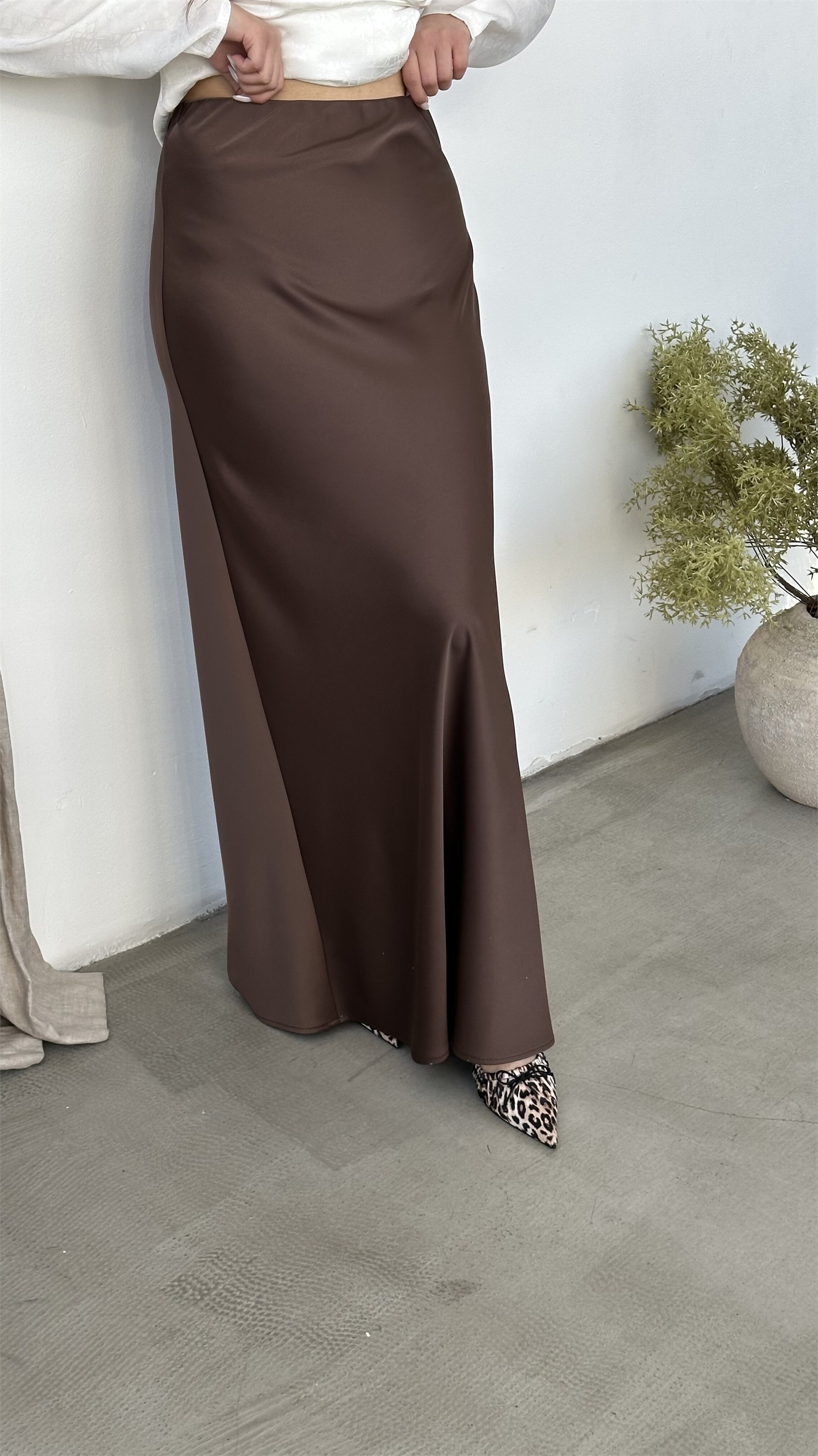 Универсальная базовая юбка длины макси, с идеальной посадкой благодаря крою "по косой" Модель имеет комфортный пояс на резиновой тесьме, выточки по задней части.Юбка выполнена из высококачественного японского шелка.Модель представлена в цвете "кремовый кофе"Размерная линейка от 44 до 54 р