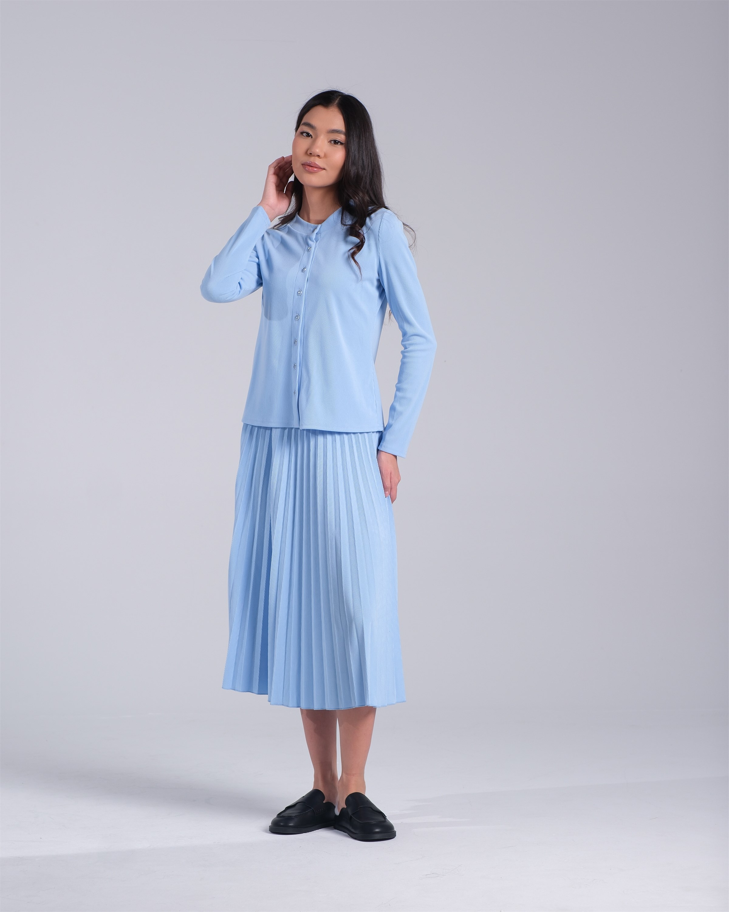 Юбка длины миди из ткани плиссе, пояс из эластичной резиновой тесьмы.