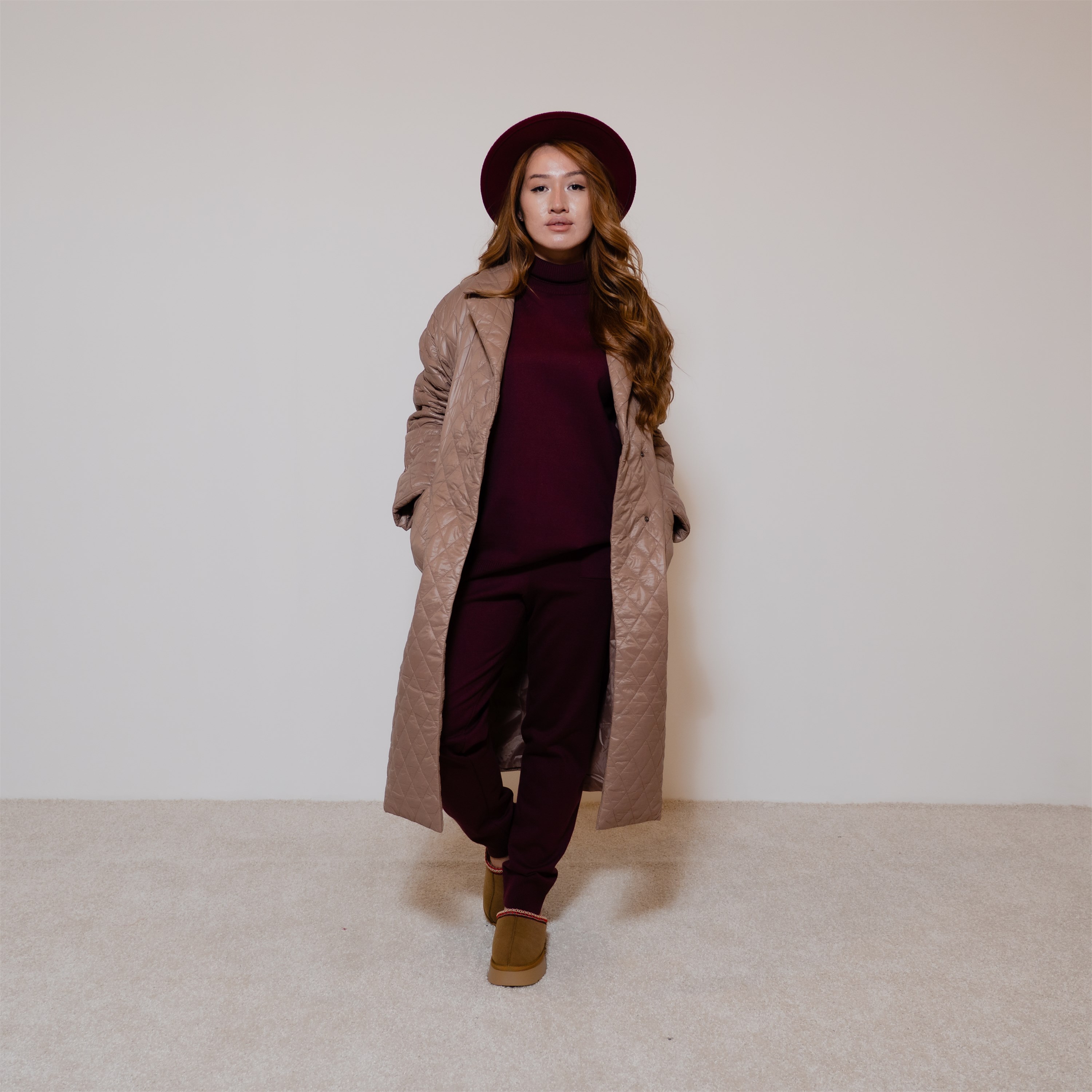 ***Тік пішімді әшекей тігісті пальто. Лацкан жағалы, жапсырма қалталы, түймелікке бекітілген. Белдігі алынбалы, ұзындығы балтырға дейін