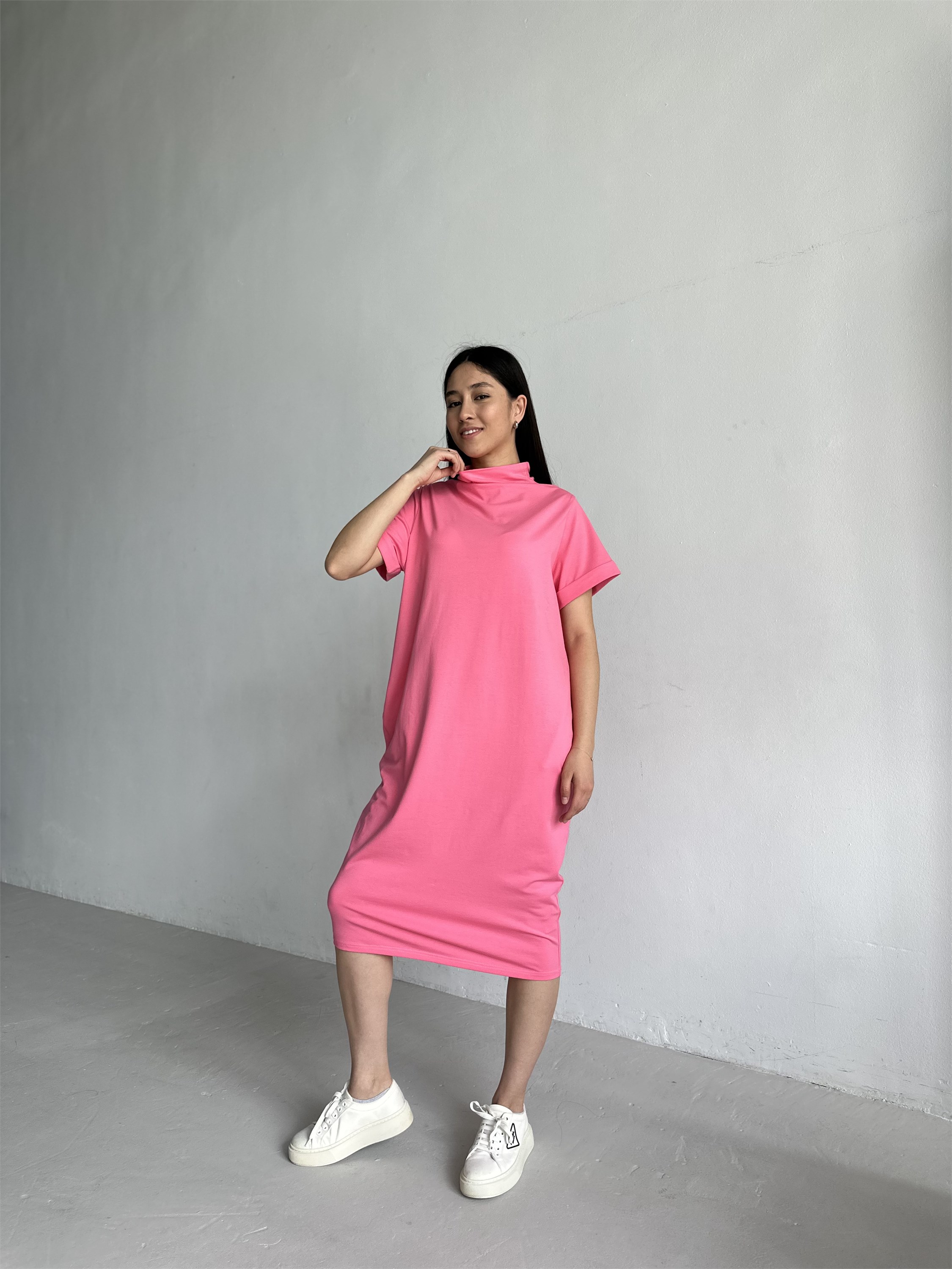 Трендовое платье из высококачественного хлопкового трикотажа для тех кто любит необычный дизайн и удобный фасон оверсайз.Модель в длине миди, с укороченным рукавом и воротником стойкой.Отлично подойдет для повседневного использования- в офис, университет, на отдых.Размерная линейка от 44 до 52 р. Модель представленна в ярком розовом, васильковом, черном цветах.