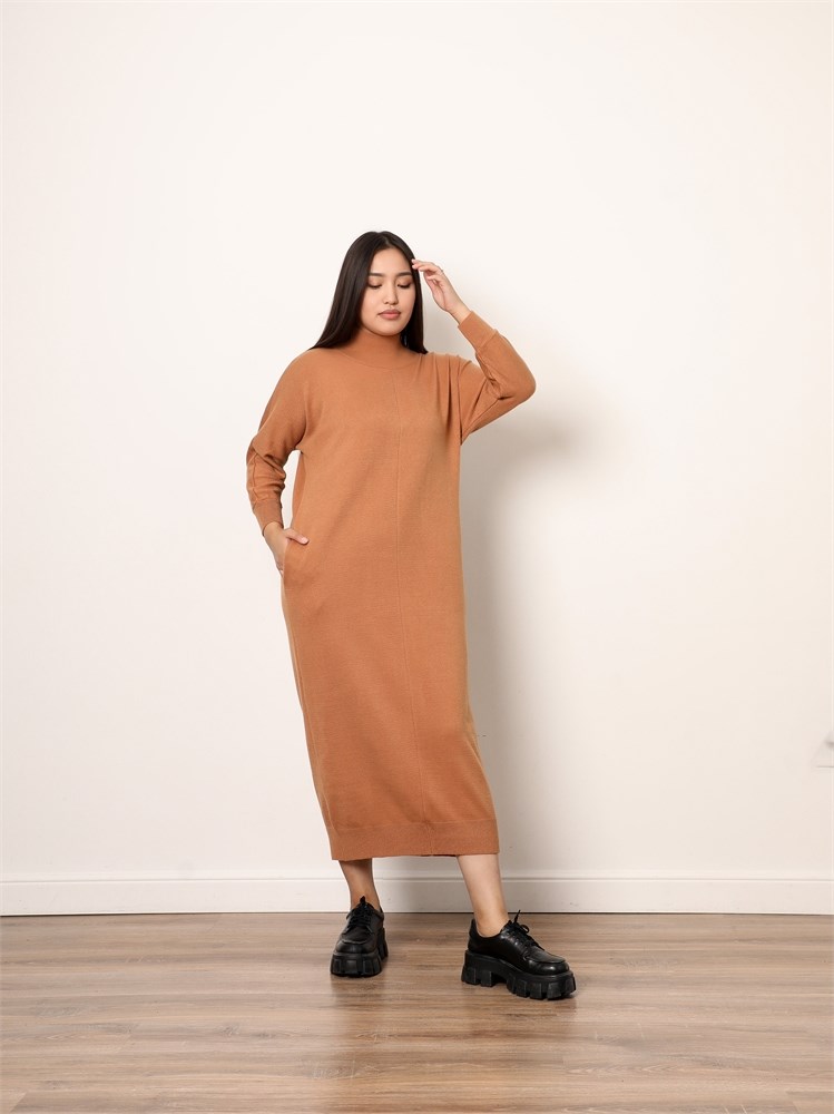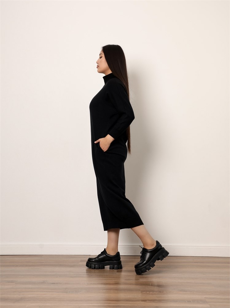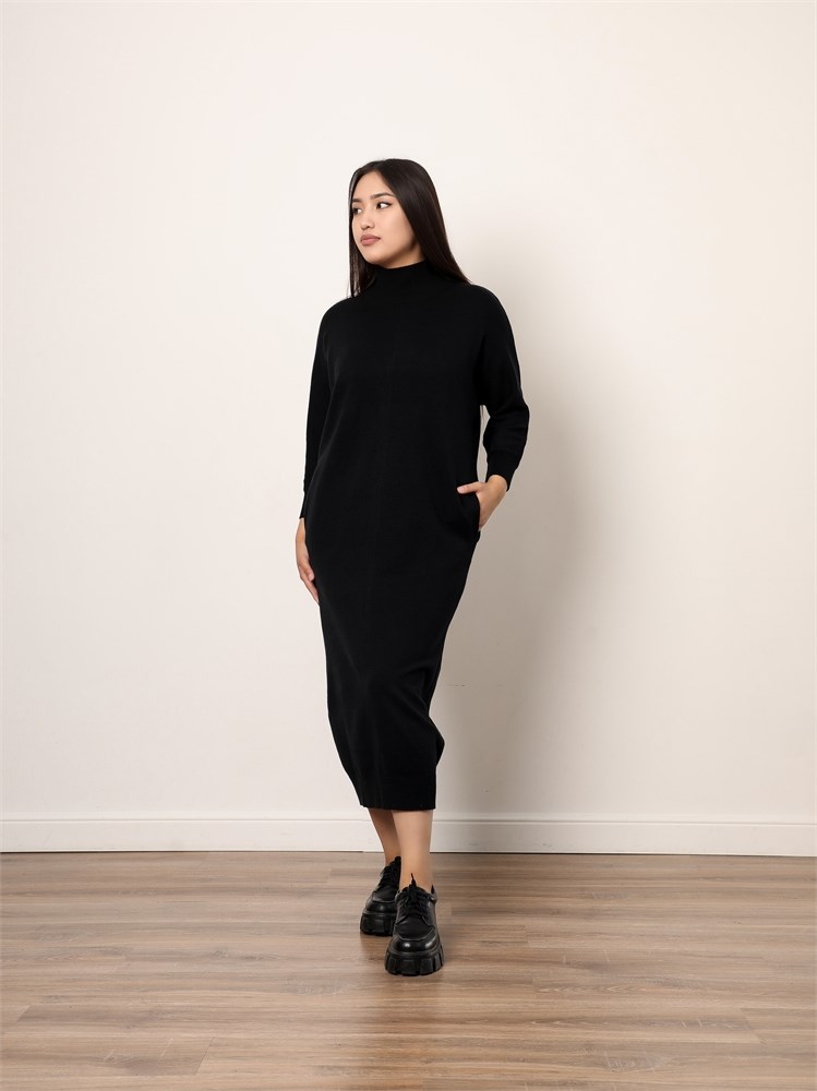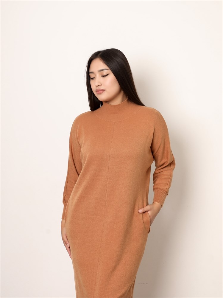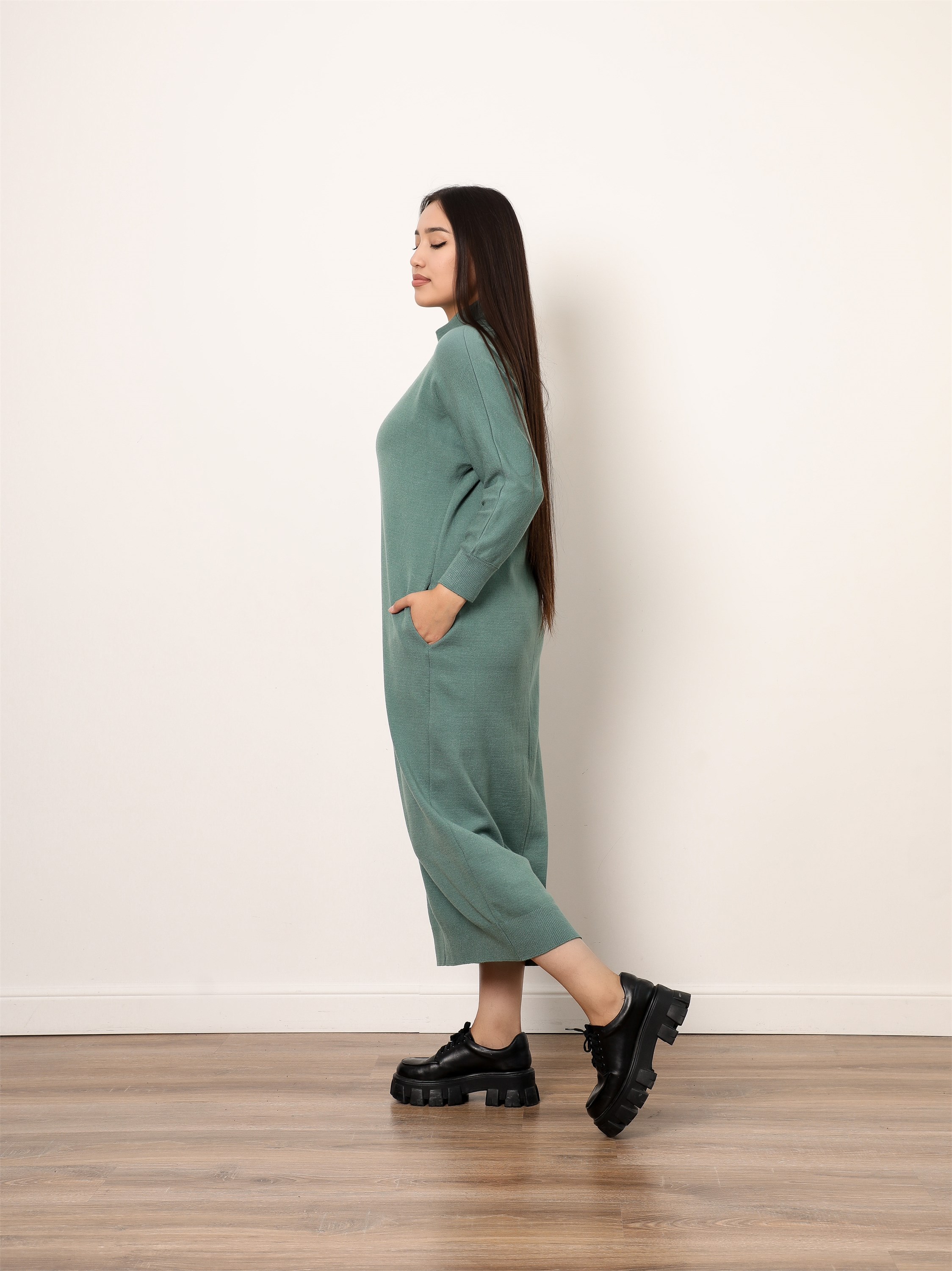Платье из высококачественной смесовой пряжи свободного силуэта со цельнокроеным рукавом и мягкой линией плеча. Воротник стока, рукав 3/4 с манжетом,длина платья миди. Подходит на сезон осень-зима.Представленно в трех расцветках-черный, бирюзовый и теплый-кемел.