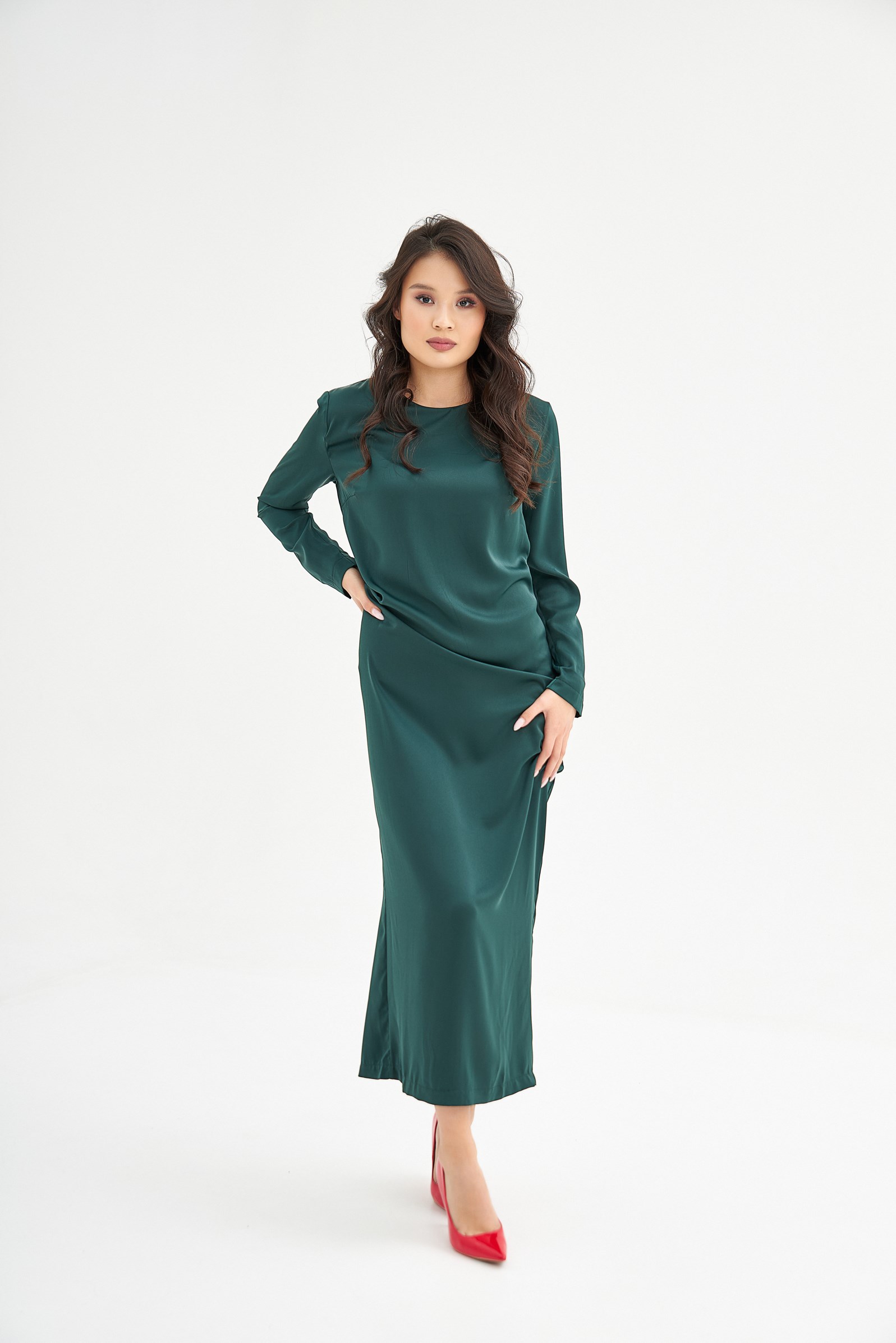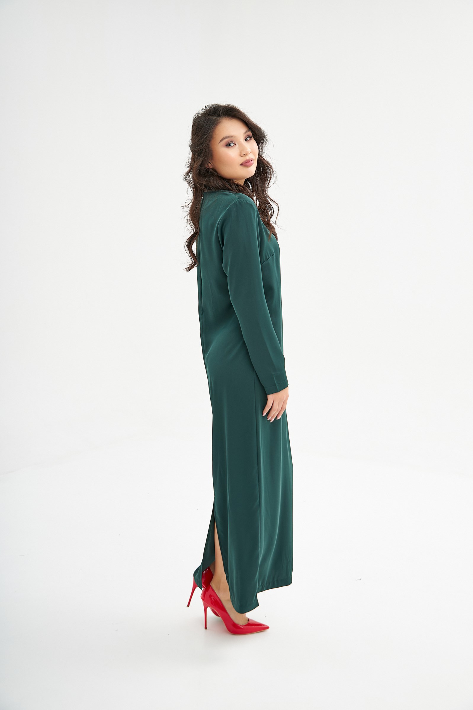 ***Тік пішімді қондырма жеңді көйлек. Артқы бойы сыдырмалы түймелікке бекітілген. Бұйым толық ұзындықта.