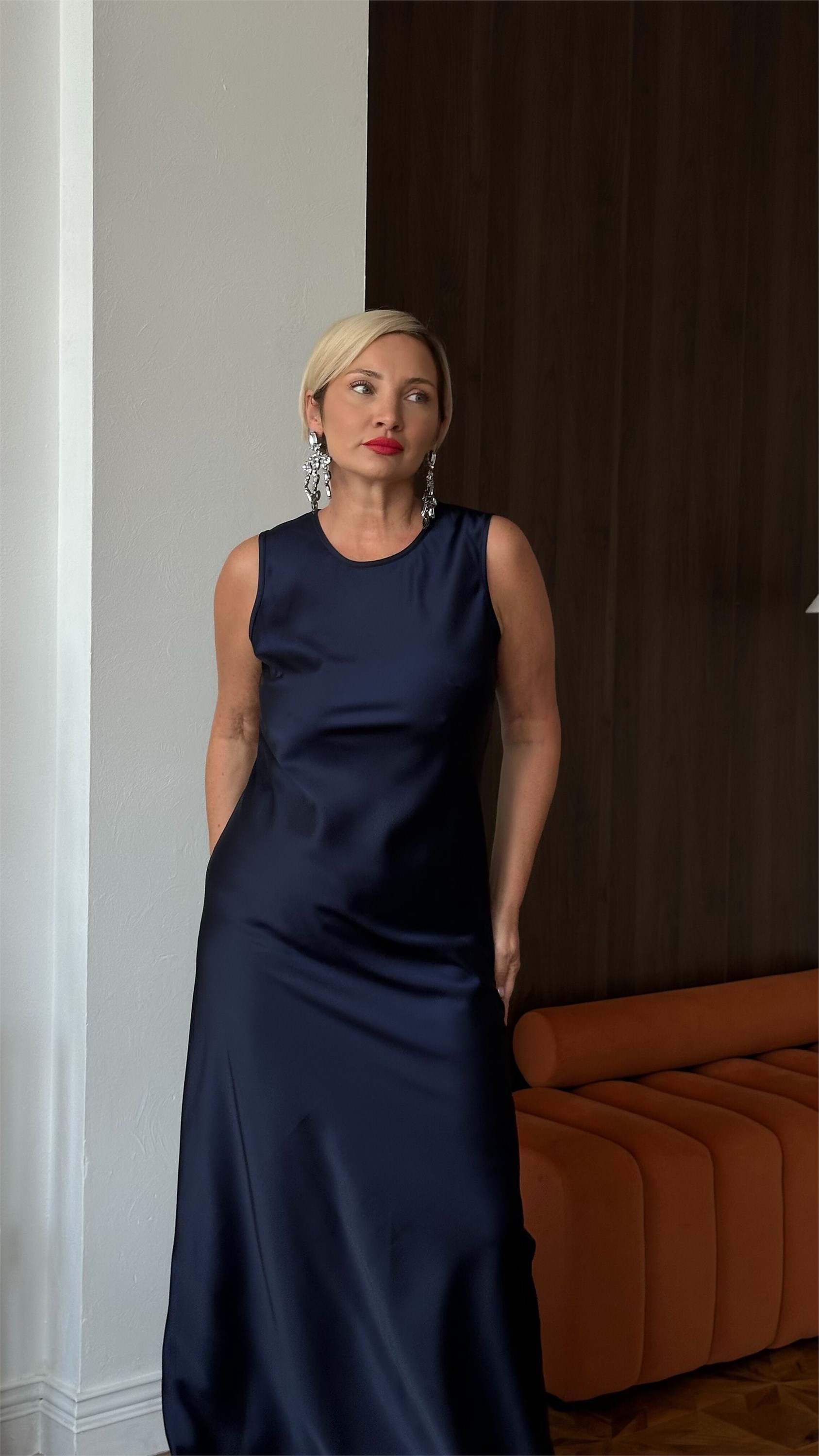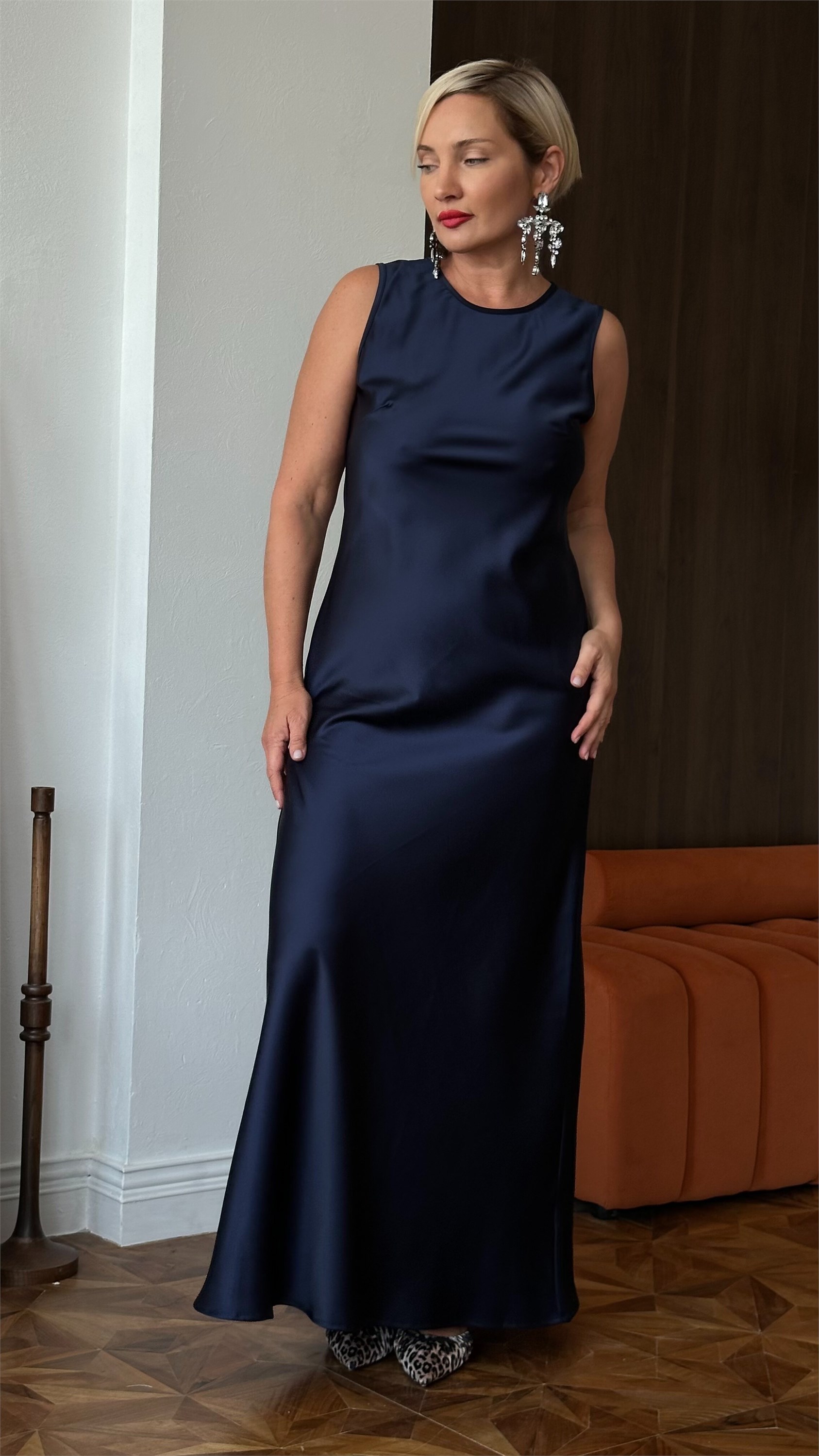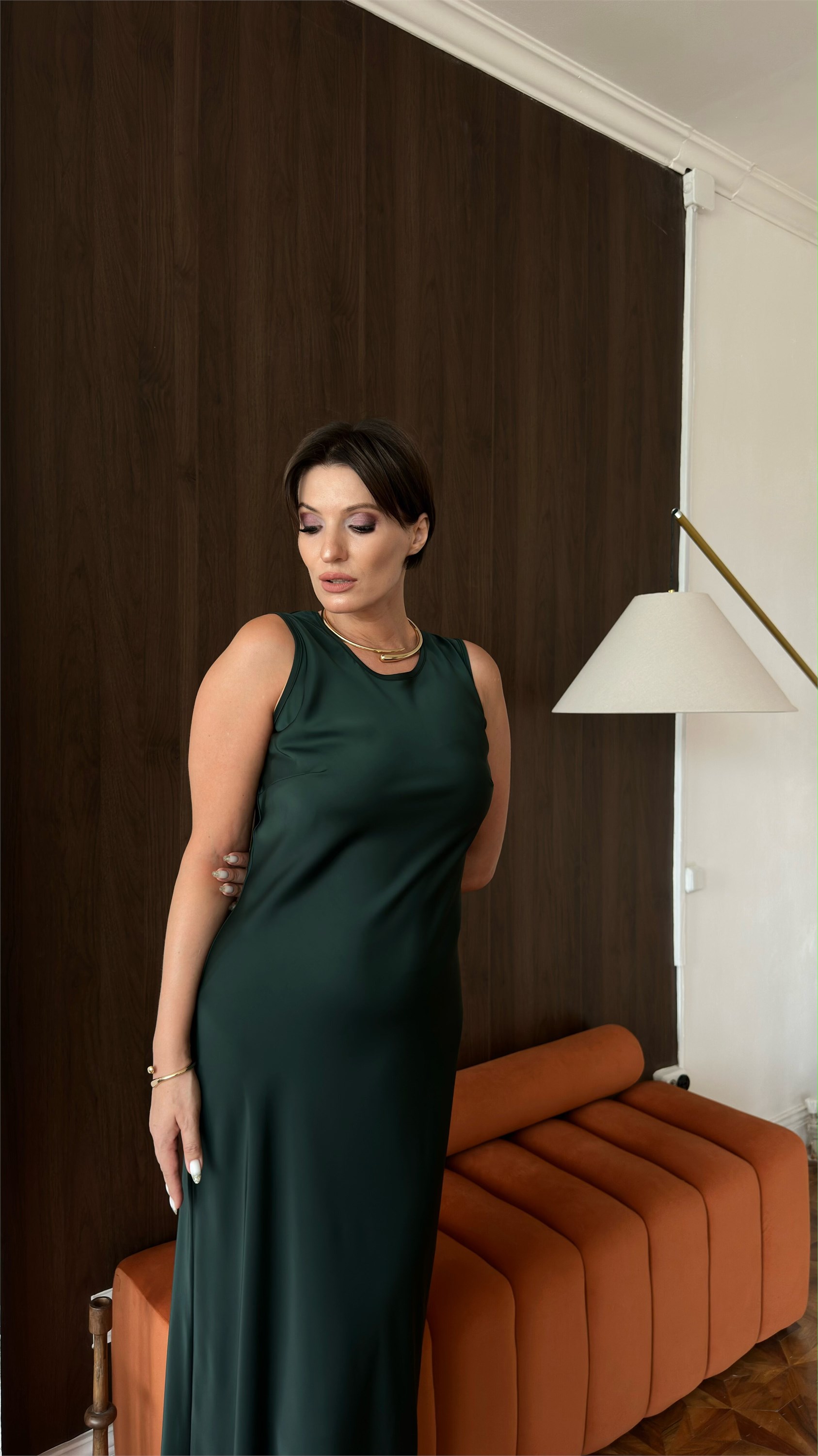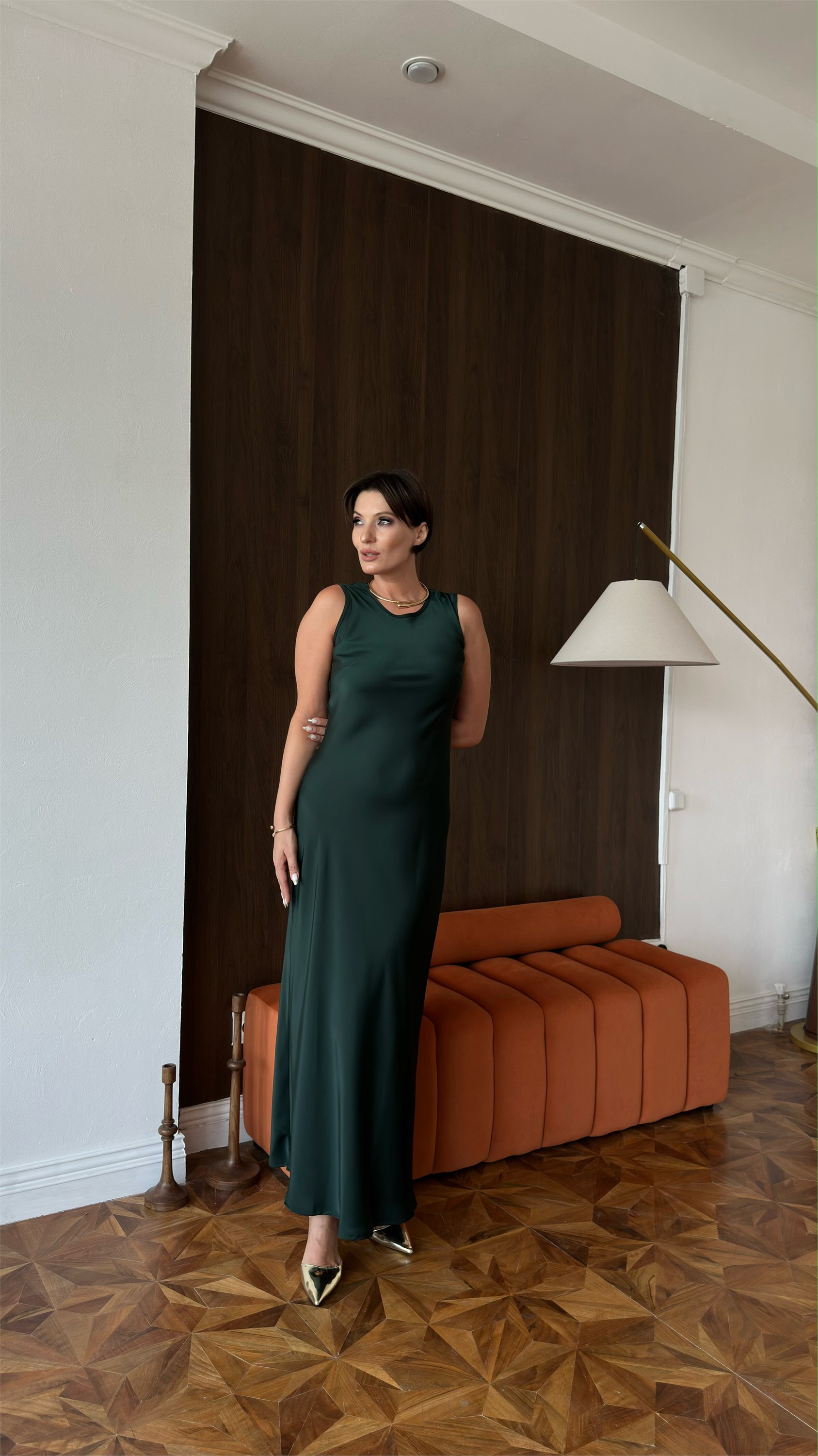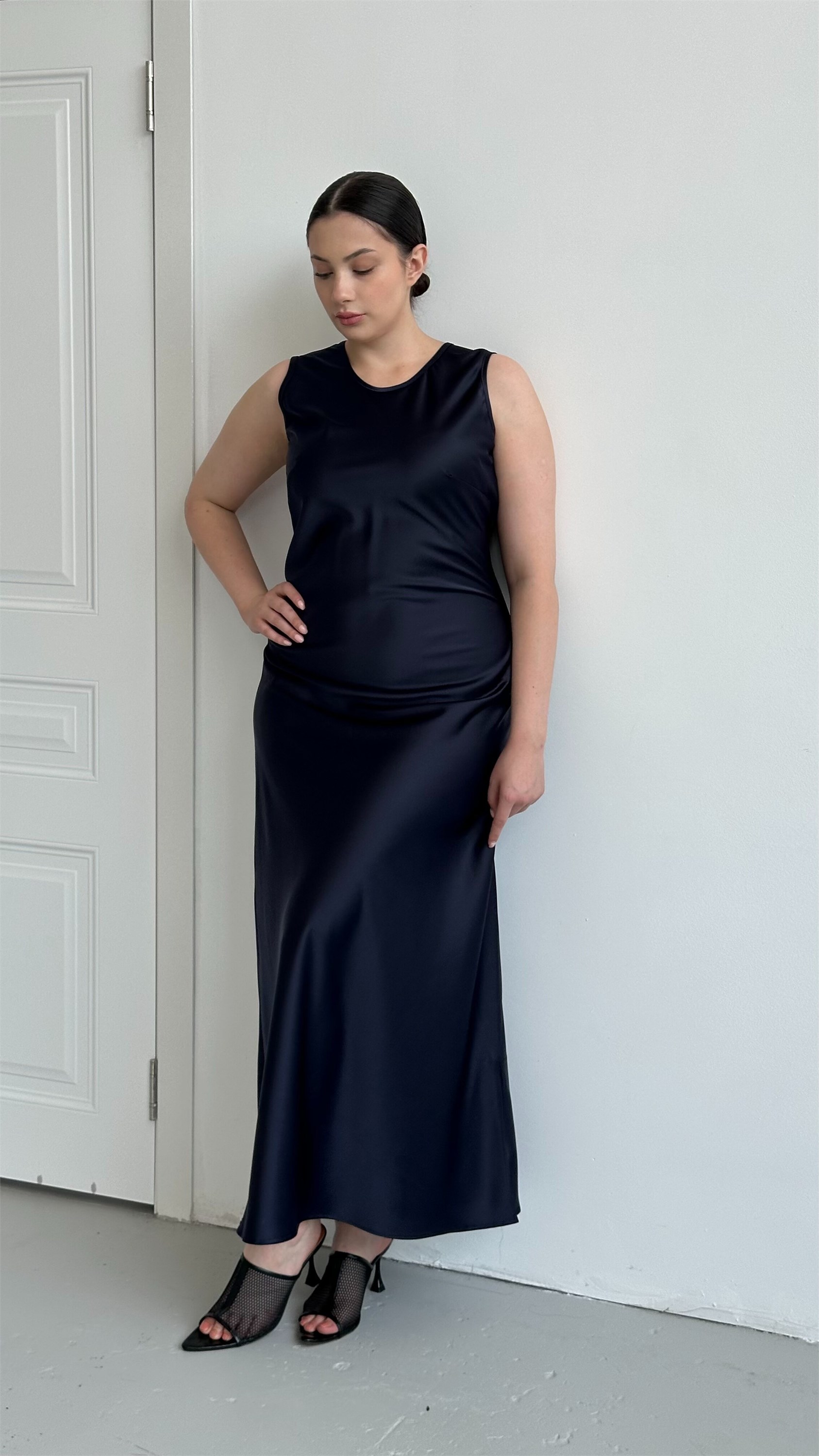 Платье,являющееся идеальной комбинацией базовой вещи и праздничного наряда, изготовлено из высококачественного японского шелка, обладающего неповторимым блеском и изяществом.Модель имеет полуприлегающий силуэт, благодаря крою ткани по косой отлично тянется и красиво драпируется.Горловина круглая, брители широкие, длина платья макси. Размерная линейка от 44 до 54 размеров.Модель представлена в двух расцветках-черника и изумруд