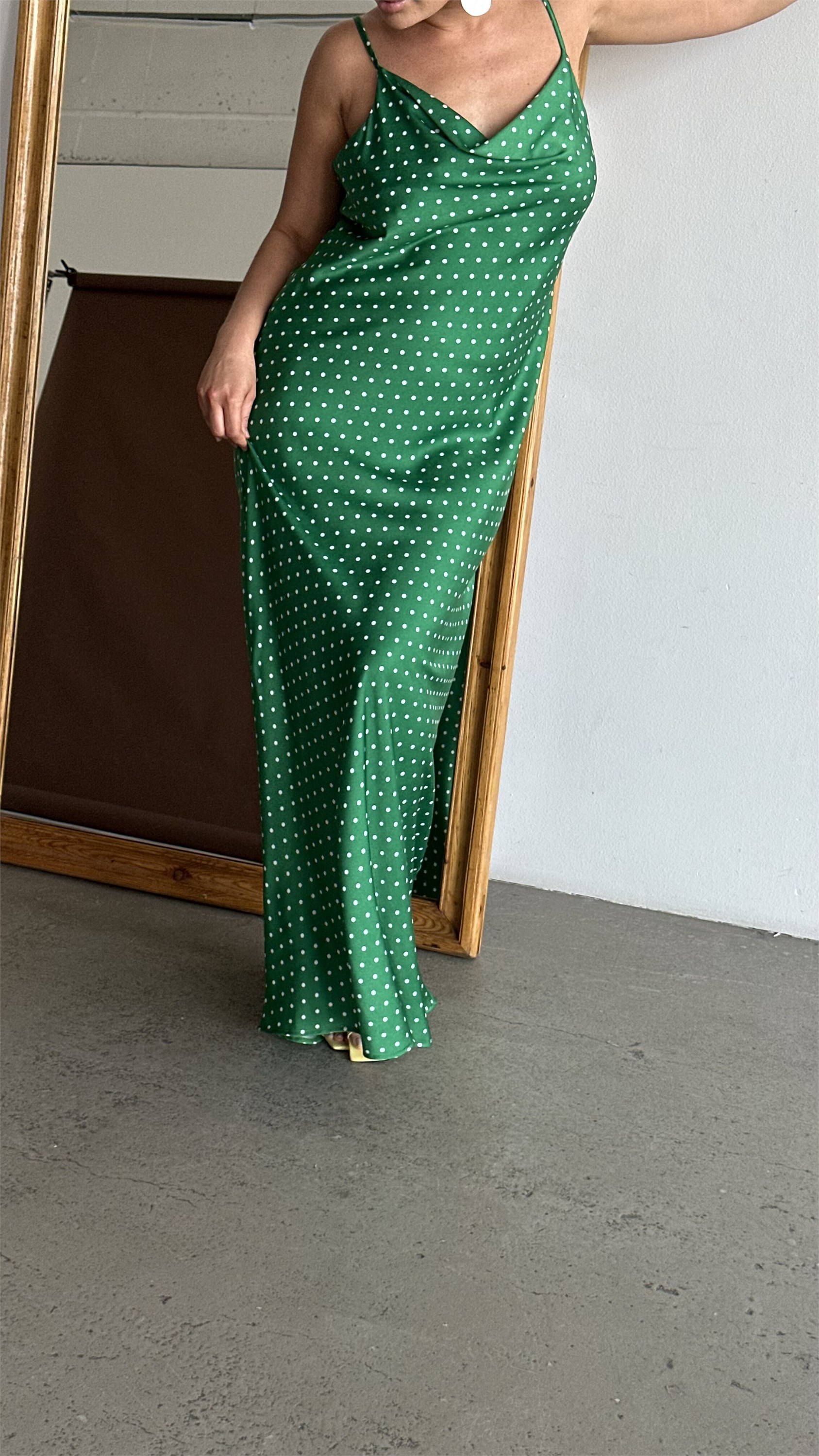 Элегантное платье комбинация в длине макси подчеркнет силуэт, создавая женственный и утонченный образ. Модель имеет полуприлегающий крой под углом 45 градусов, выполнено из плотной, мягкой и очень приятной к телу шелковой ткани. Широкий вырез-водопад на груди и открытая спинка. Тонкие бретели с регулировкой по длине, перекрещенные сзади.Платье подойдет для женственных образов на романтические свидания, праздники, в театр и по другим особым поводам или просто на каждый день. Модель представлена в базовом черном цвете, тропическом принте и зеленом цвете с белым горошком.Размерная линейка от 44 до 52 р.