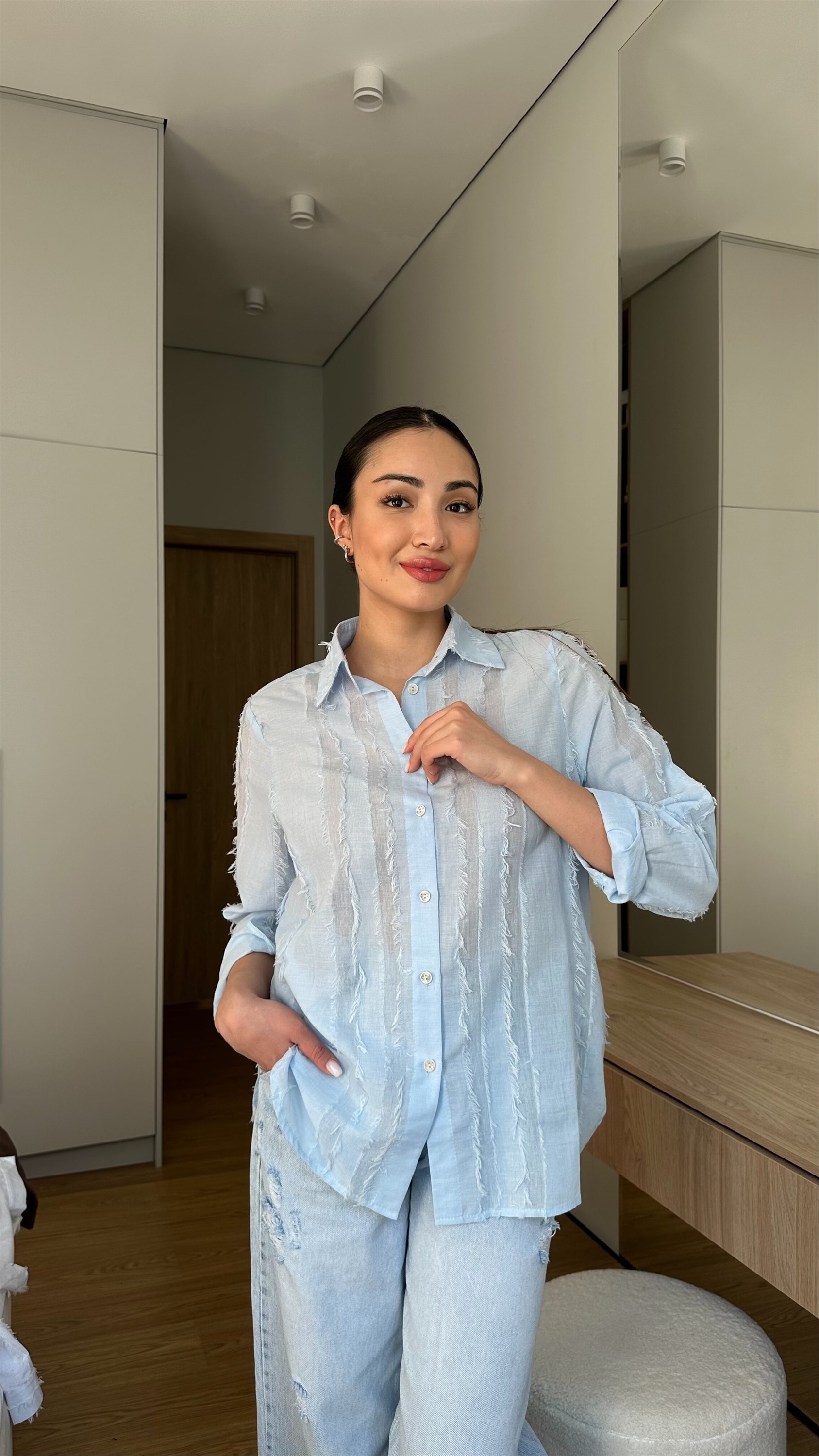 Рубашка свободного силуэта из фактурной хлопковой ткани.