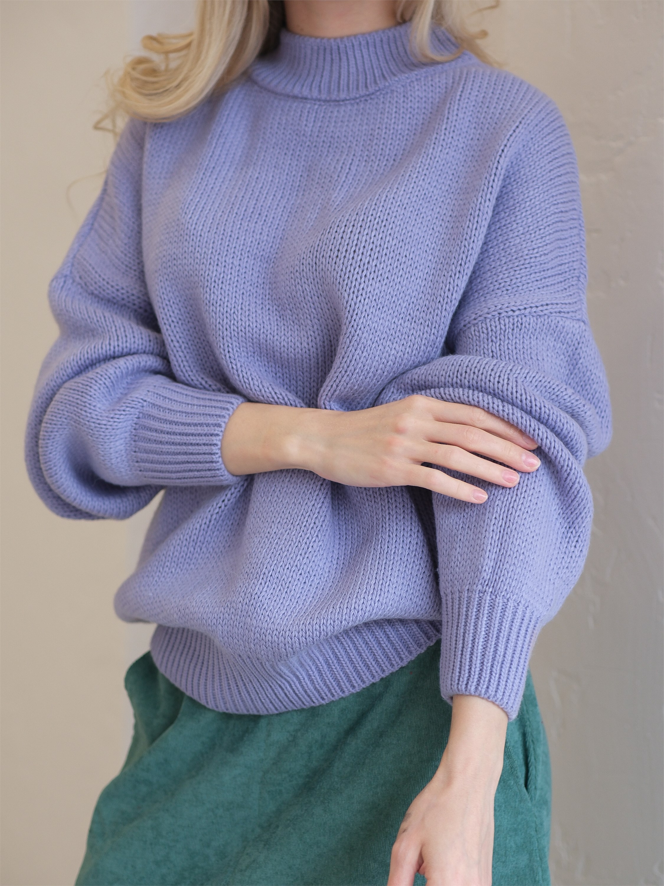 Джемпер вязаный свободного кроя со спущенным рукавом. Воротник высокий, длина до бедер.