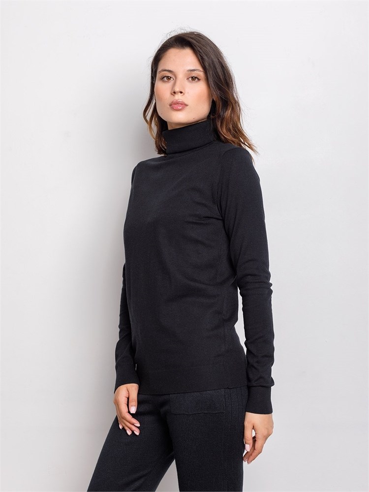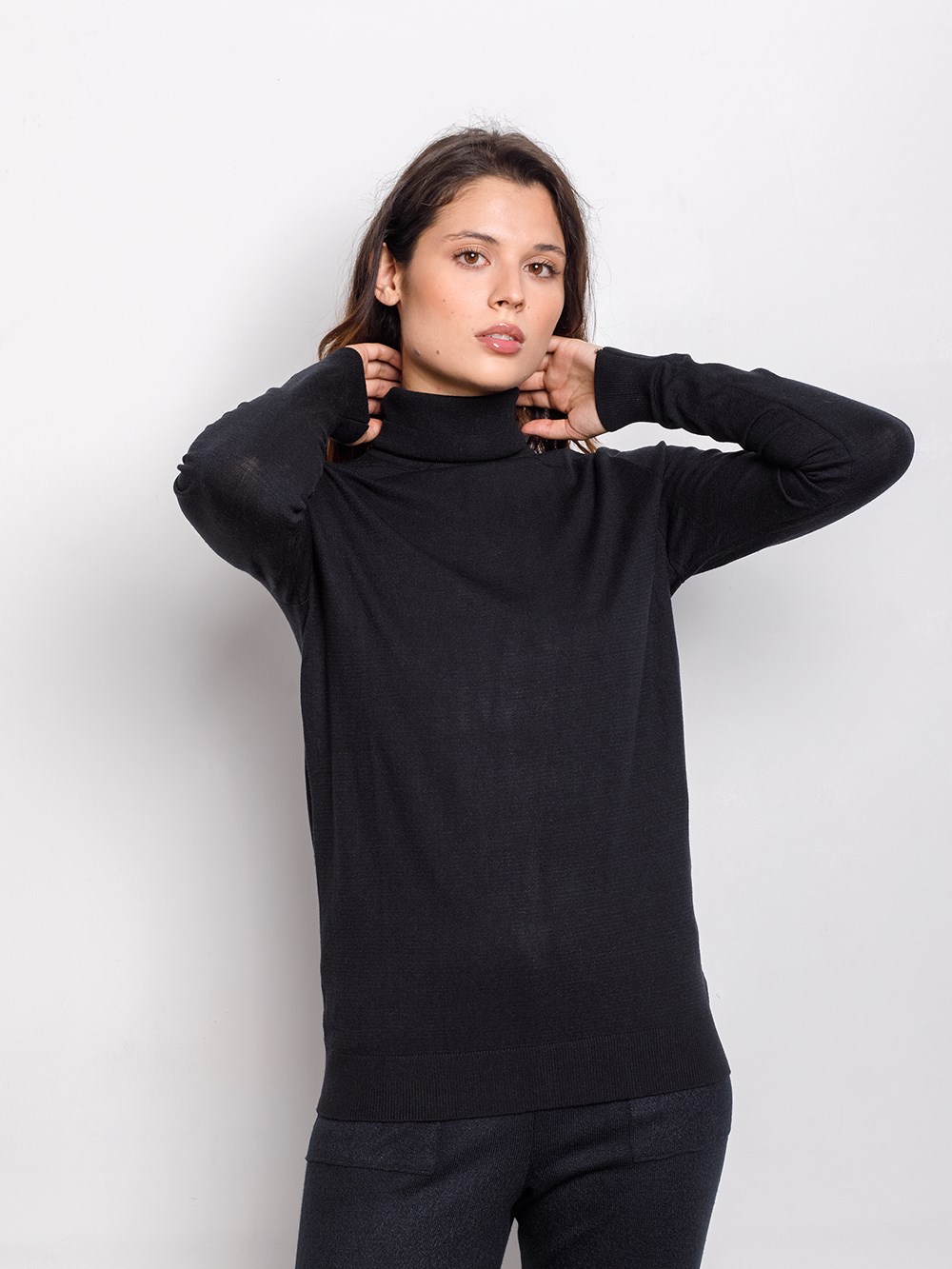 Водолазка вязаная прямого силуэта. Рукава втачные, длина изделия полная